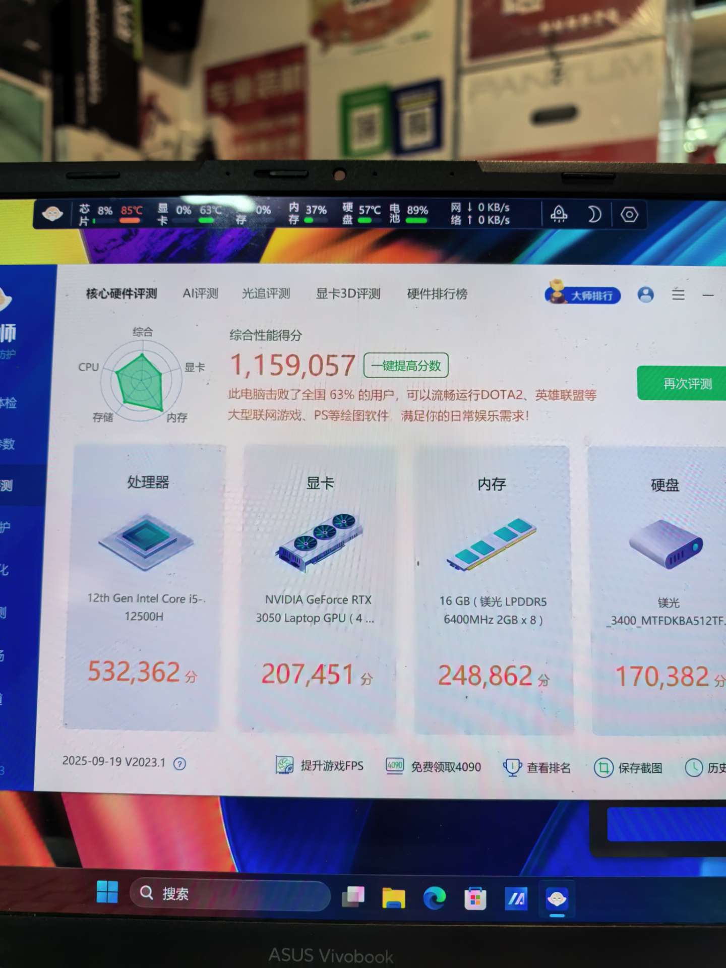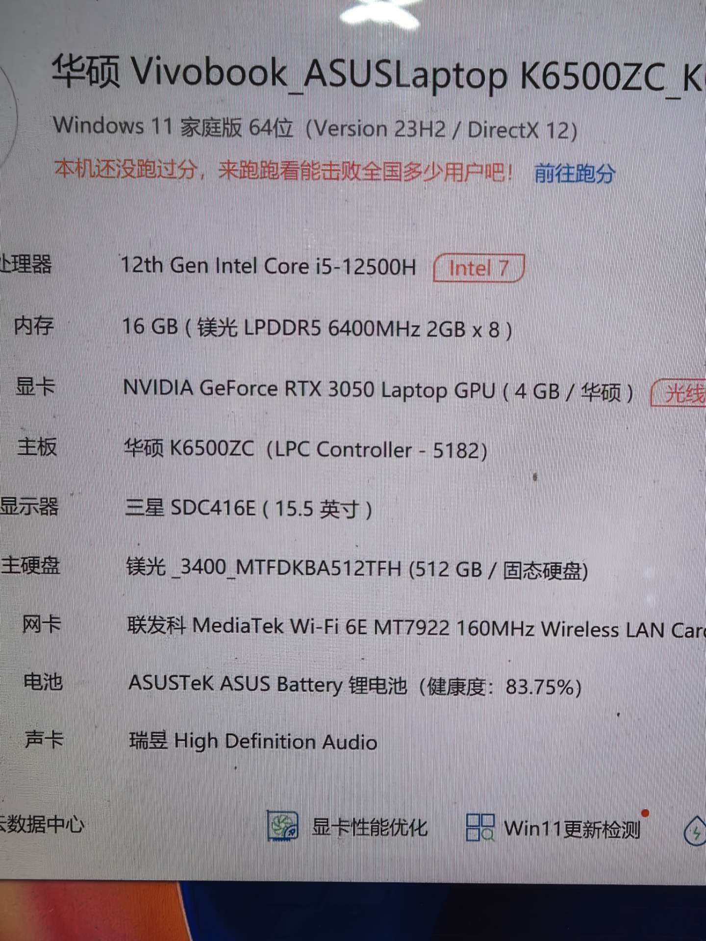 8成新 酷睿12代i5 12500h 16G内存 512G固态硬盘 rtx3050 4G独立显卡 15.6寸高分电竞屏 适合商务办公 高清影音 网络游戏流畅运行