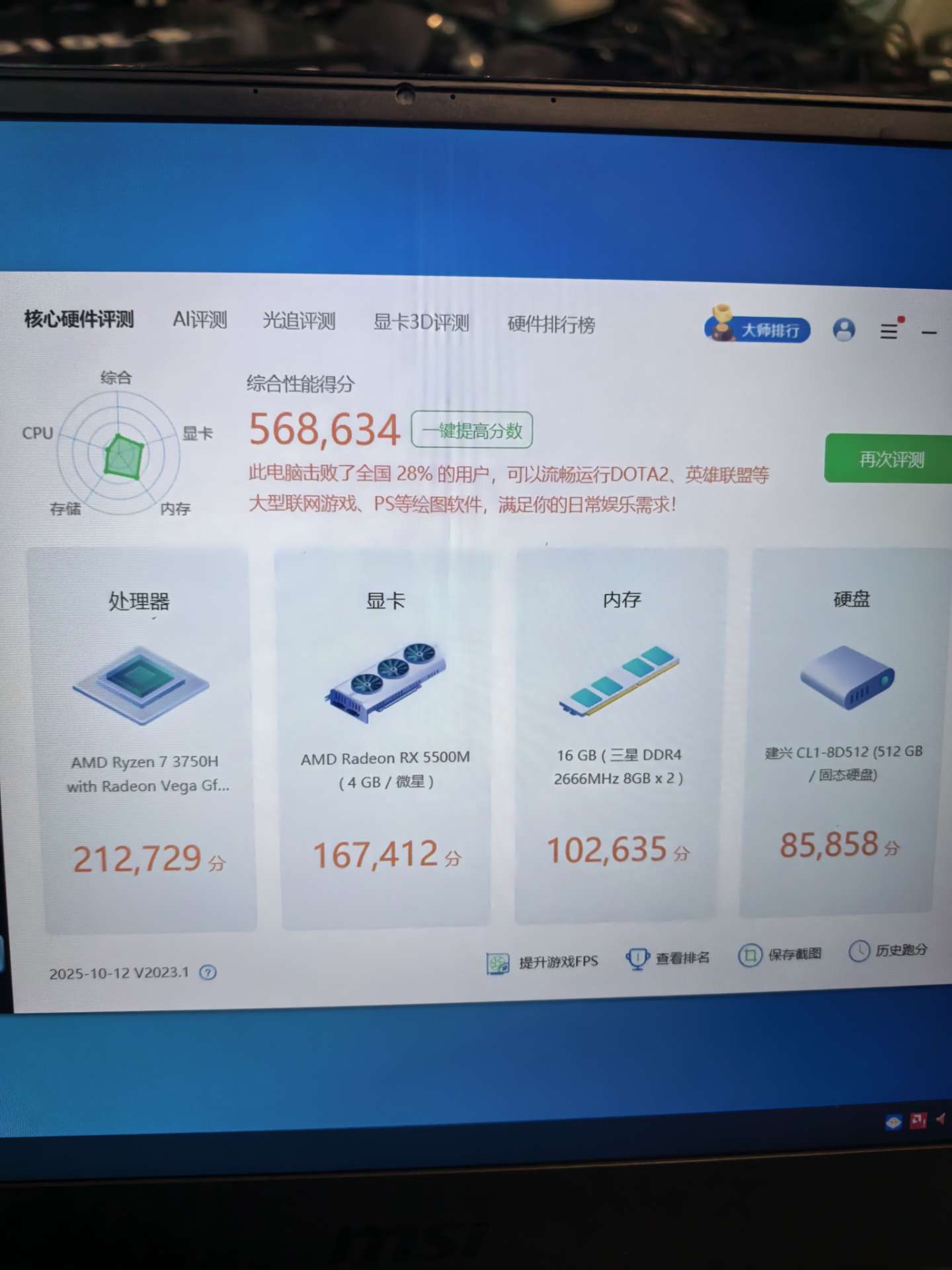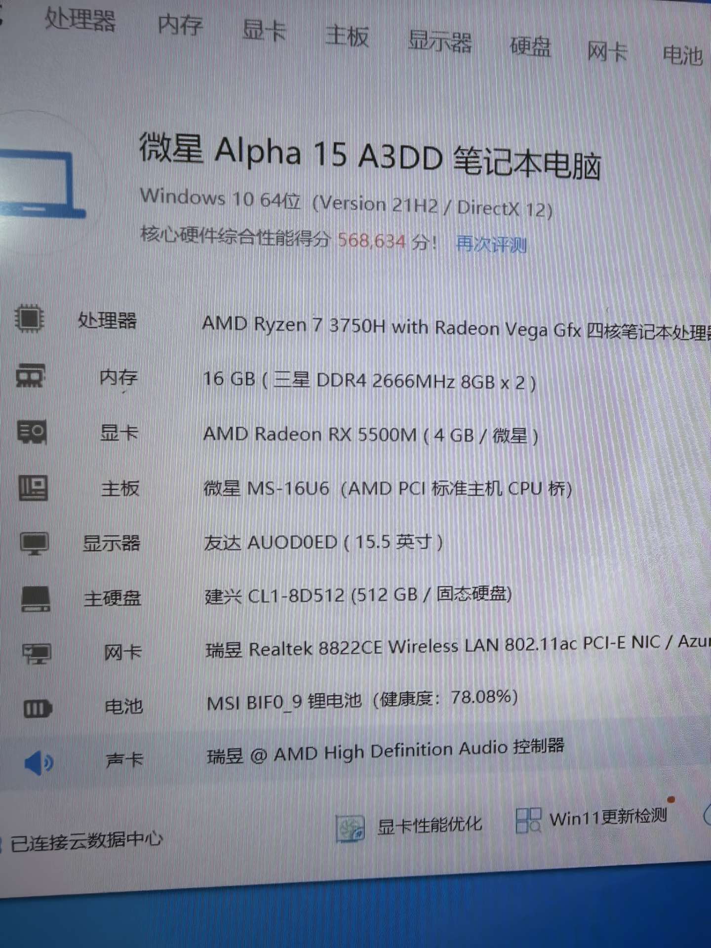 8成新 锐龙r7 3750h 16G内存 512g固态硬盘 rx5500m 4G独立显卡 15.6电竞屏 适合商务办公 高清影音 网络游戏流畅运行
