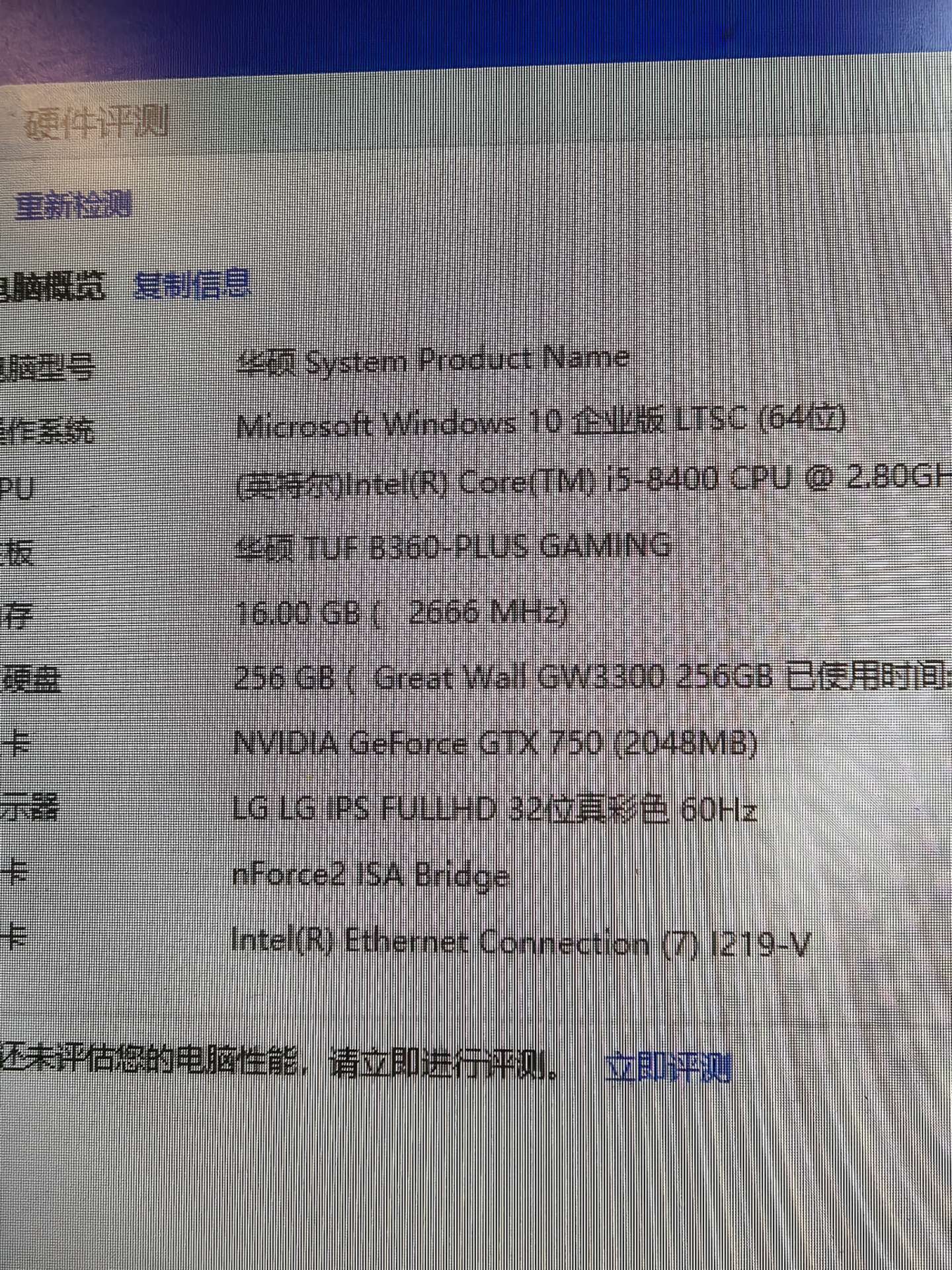 8成新 酷睿8代i5 8400 cpu 华硕b360大板 全新16G内存 全新256G nvme固态硬盘 gtx750 2G独立显卡 额定500W电源 侧透机箱