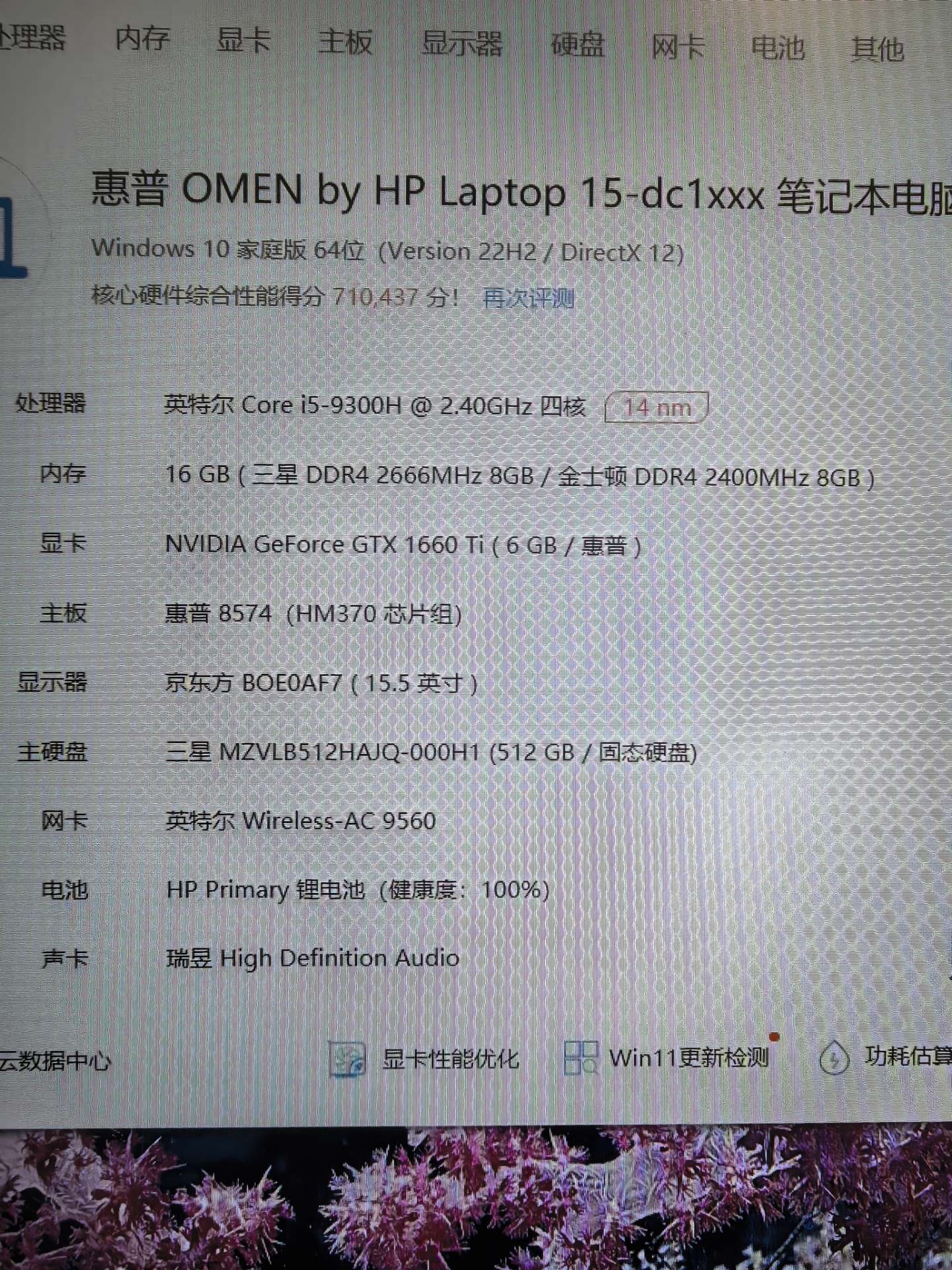 8成新 酷睿9代i5 9300h 16G内存 512G固态硬盘 gtx1660ti 6G独立显卡 15.6高分电竞屏 适合商务办公 高清影音 网络游戏流畅运行