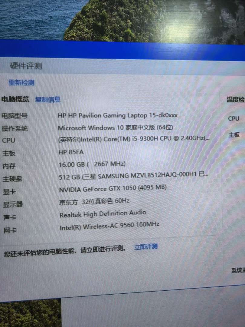 8成新 酷睿9代i5 9300h 16G内存 512G固态硬盘 gtx1050 4G独立显卡 15.6高分屏 适合商务办公 高清影音 一般网络游戏流畅运行