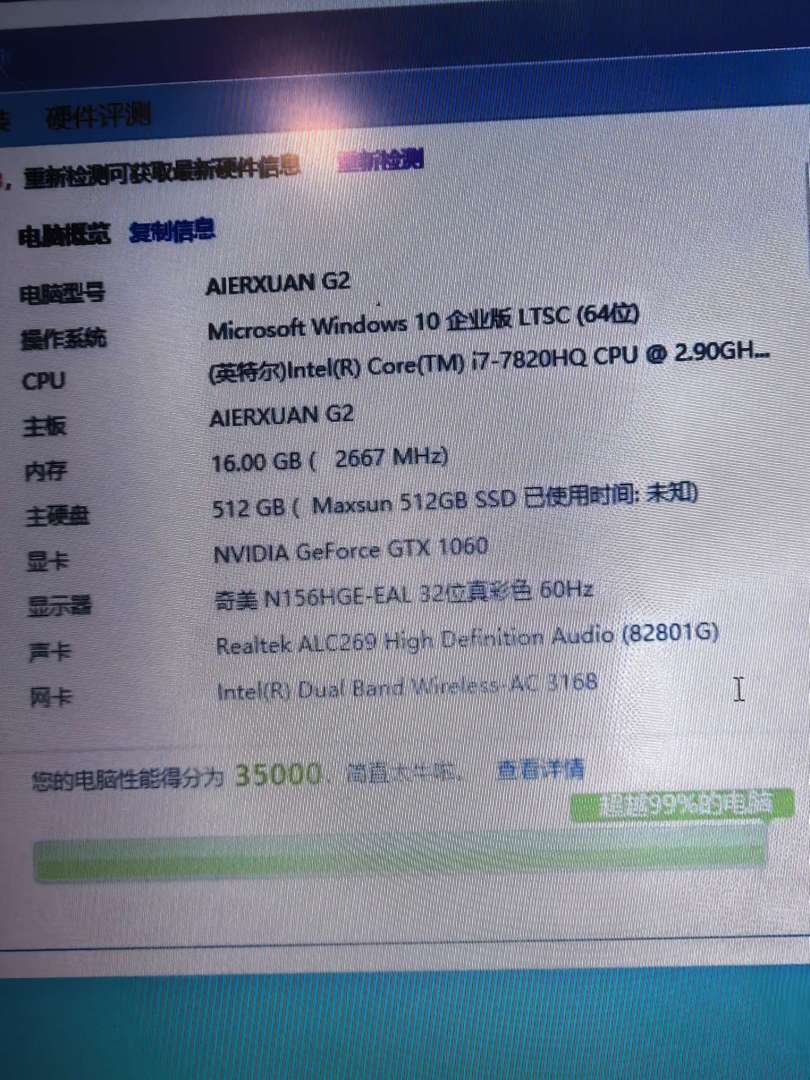 8成新 电池坏了 酷睿7代i7 7820hq cpu 16G内存 全新512G nvme固态硬盘 gtx1060 6G独立显卡 15.6寸高分屏 适合商务办公 高清影音 网络游戏流畅运行