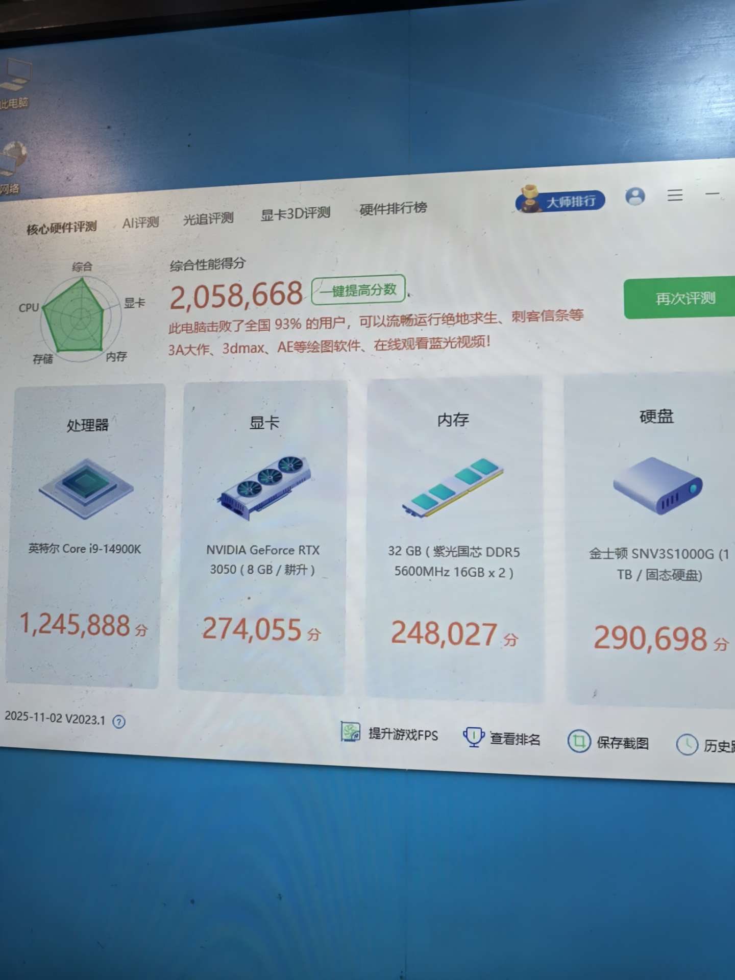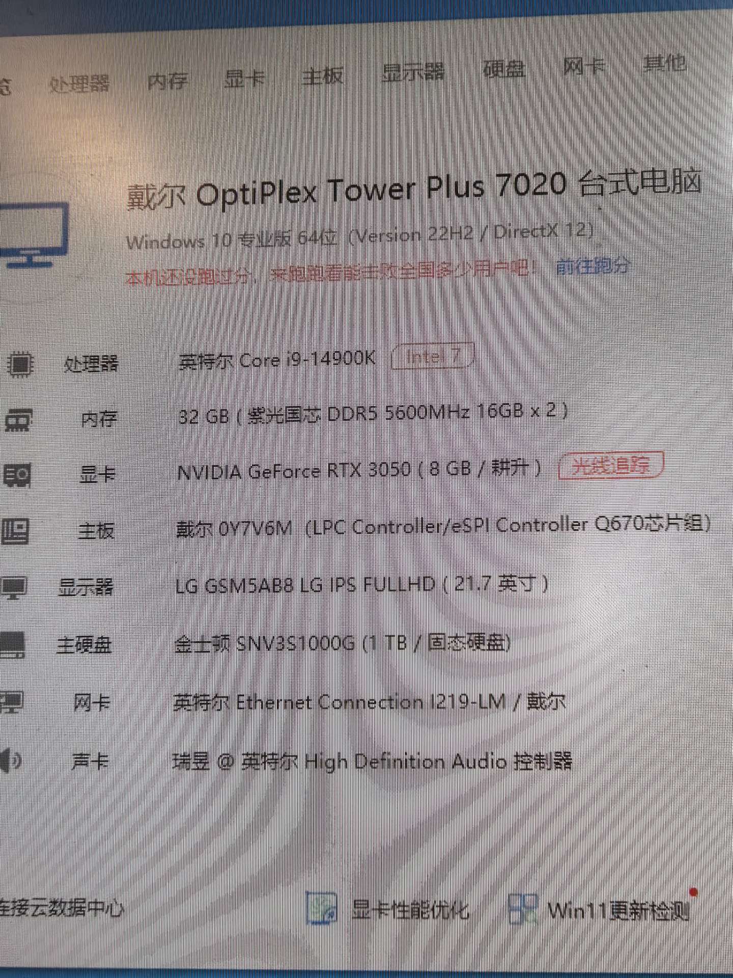 99新 25年6月出厂 整机在保 酷睿14代i9 14900k cpu d5 32G内存 1T nvme固态+2T机械双硬盘 rtx3050 8G独立显卡 适合商务办公 高清影音 视频剪辑 cad制图 网络游戏等都能流畅运行