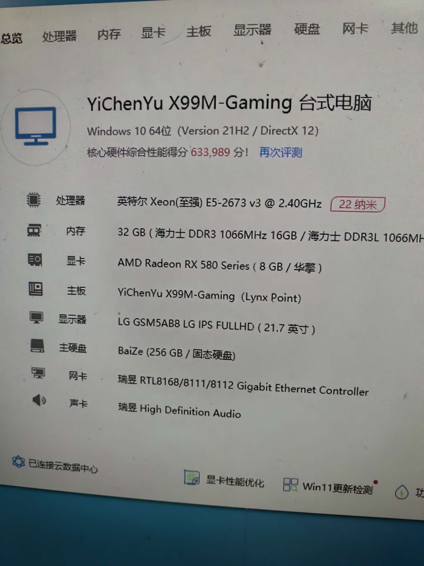 8成新 e5 2673v3 12核 24线程 CPU x99主板 32g内存 256g+240g双固态硬盘 rx580 8g独立显卡 额定500w电源 适合游戏多开 ps作图 工程制图 视频剪辑等