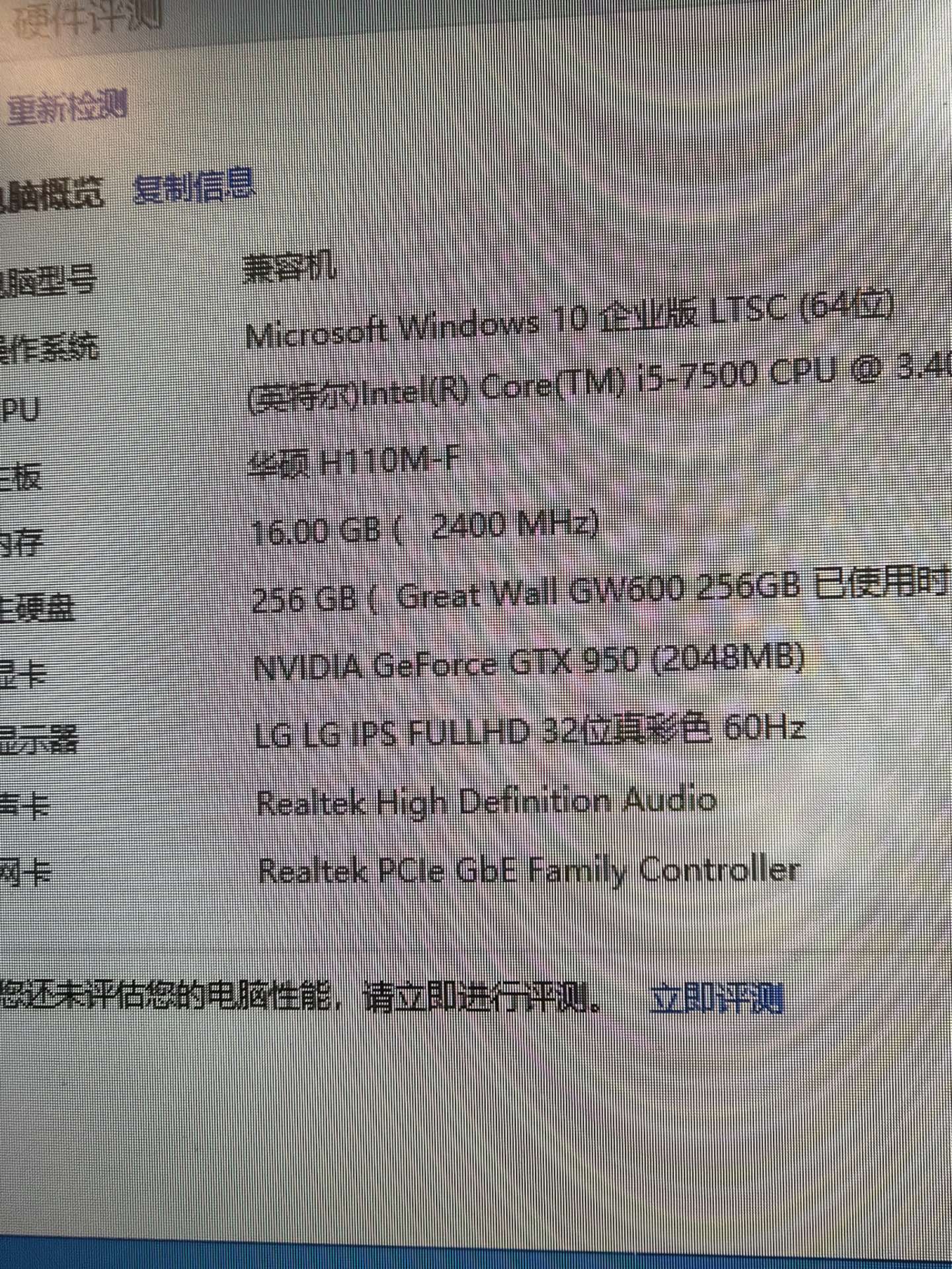 8成新 酷睿7代i5 7500 cpu 华硕h110主板 16G内存 256G固态硬盘 gtx950 2G独立显卡 额定300W电源 侧透机箱 适合商务办公 高清影音 网络游戏流畅运行