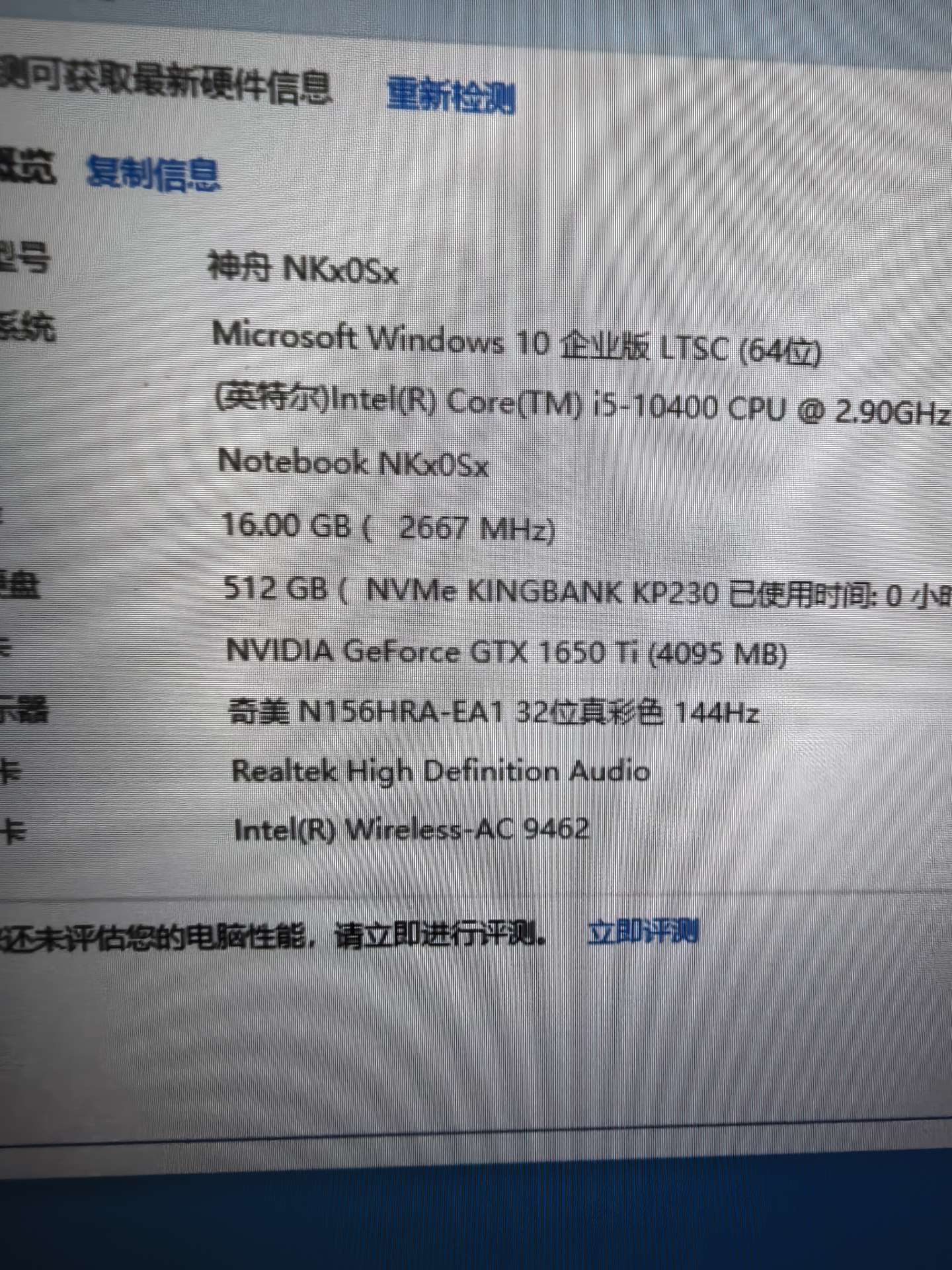 8成新 桌面级酷睿10代i5 10400 cpu 16G内存 512g固态硬盘 gtx1650ti 4G独立显卡 15.6电竞屏 适合商务办公 高清影音 网络游戏流畅运行