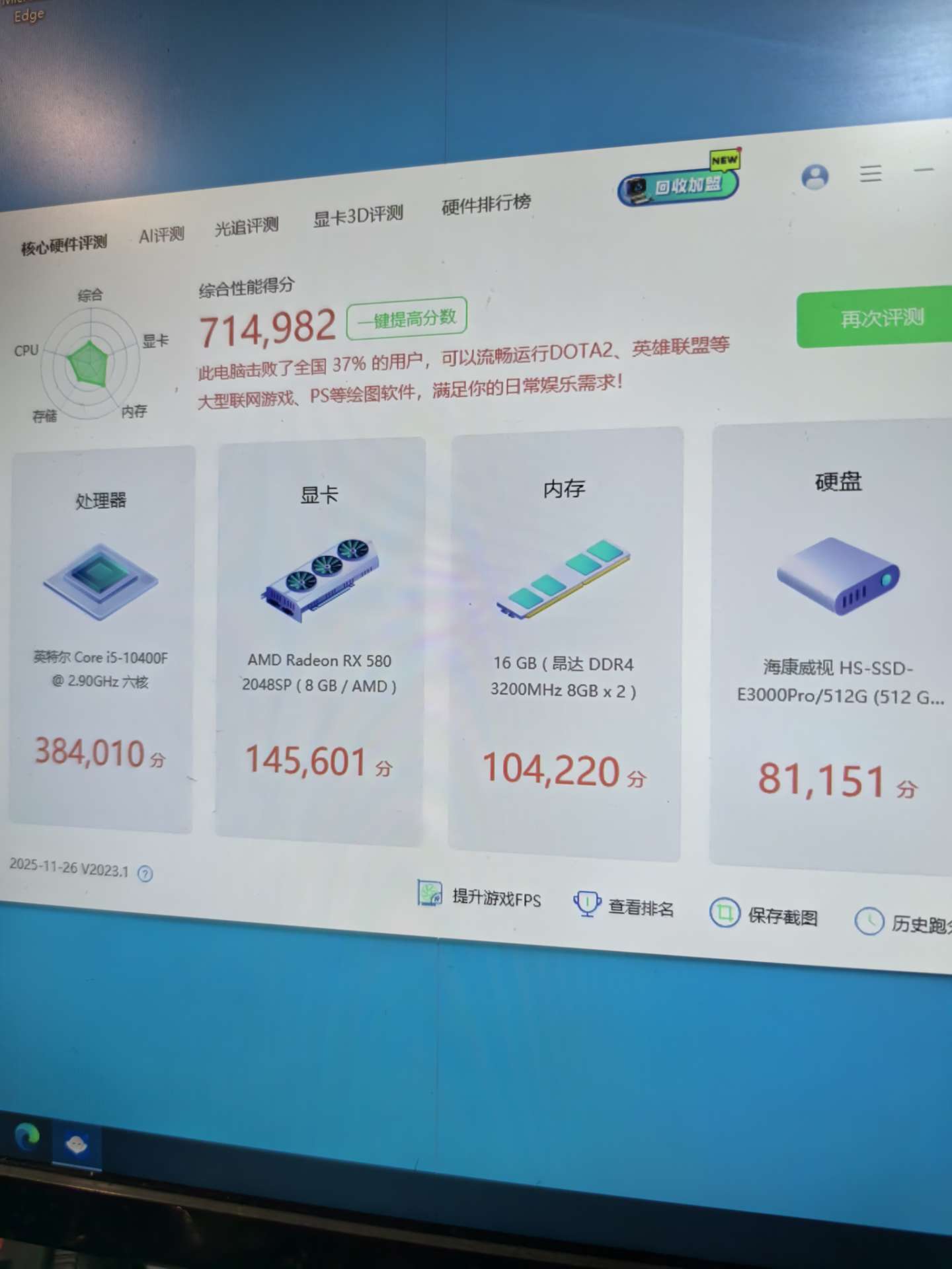 2600元I5 12400+20606小时前 404浏览二手电脑