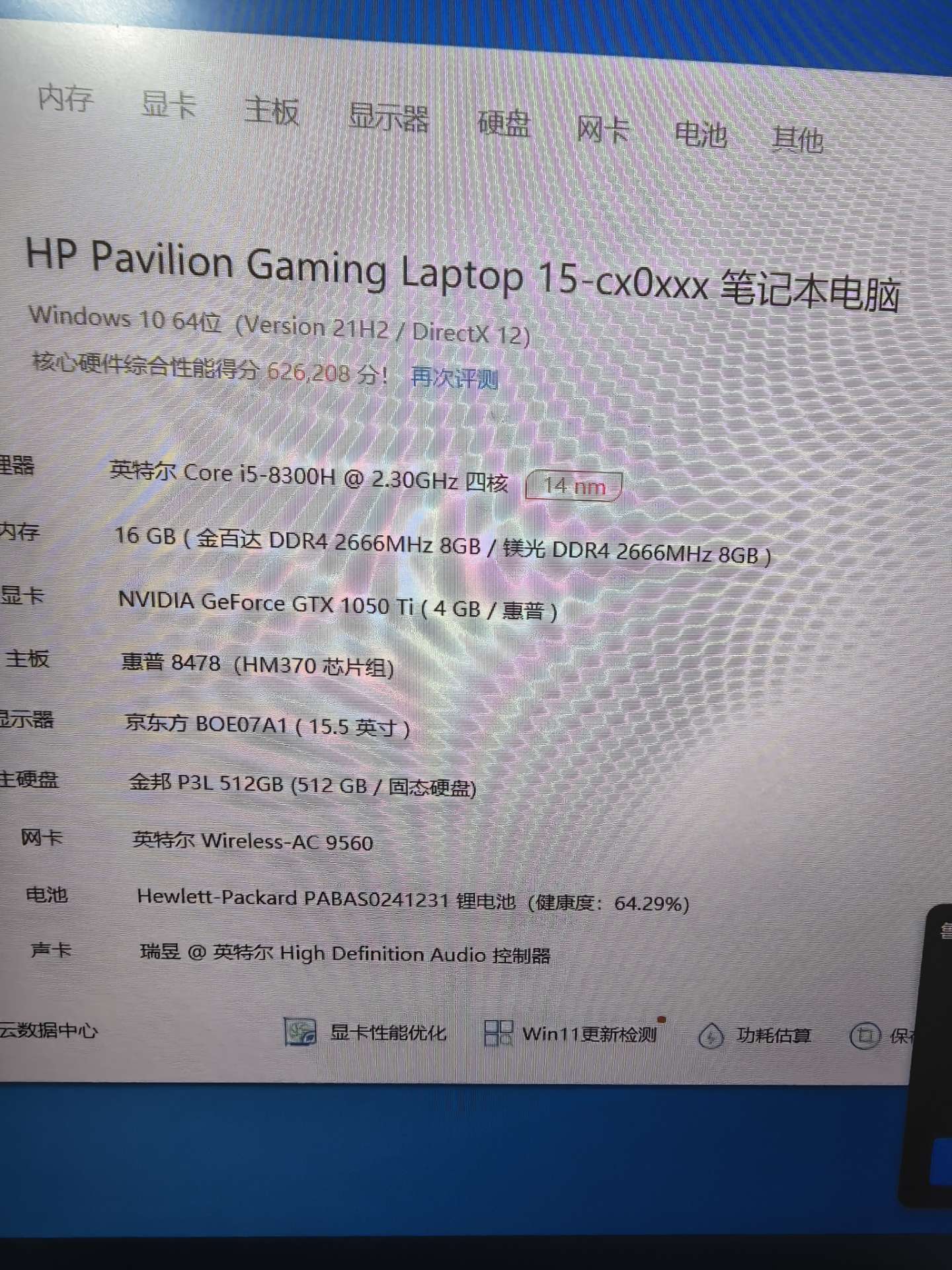 8成新 酷睿8代i5 8300h 16G内存 512G固态硬盘 gtx1050ti 4G独立显卡 15.6寸高分屏 适合商务办公 高清影音 网络游戏流畅运行
