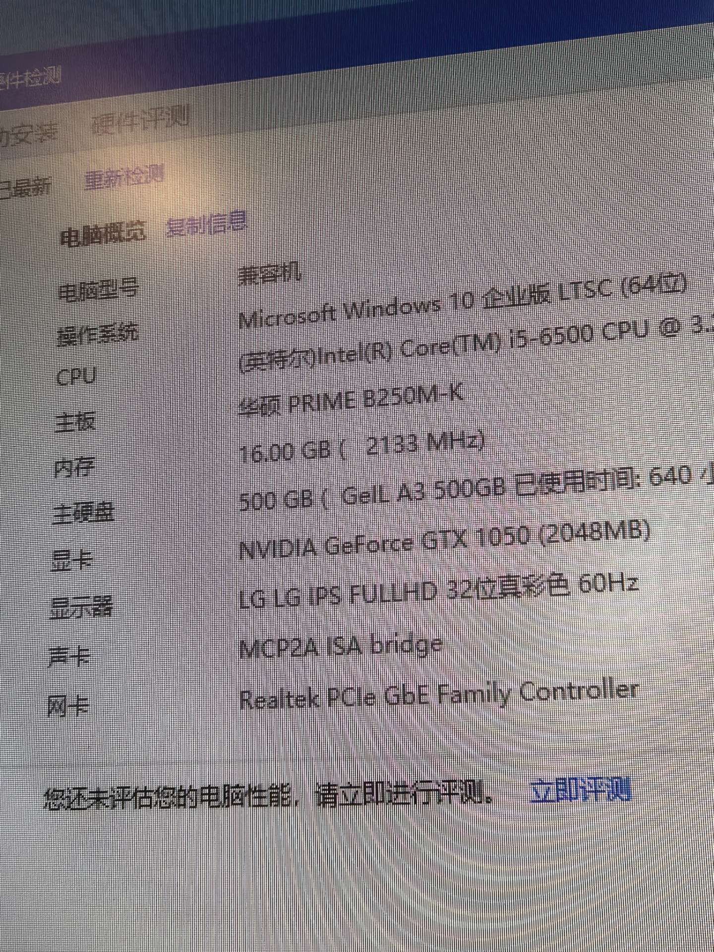 8成新 酷睿6代i5 6500 cpu 华硕b250主板 16G内存 500G固态硬盘 gtx1050 2G独立显卡 额定300W电源 适合商务办公 高清影音 一般网络游戏流畅运行
