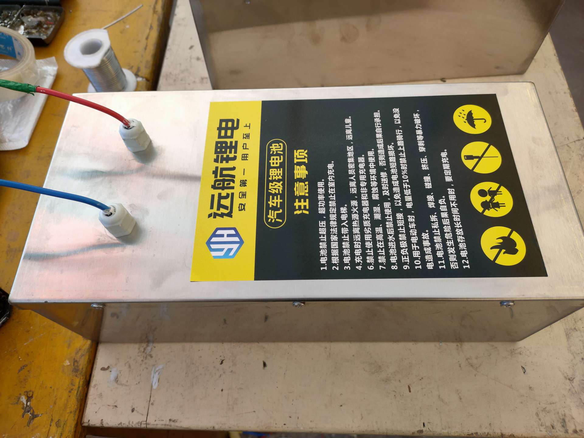 刚做的电动车电池。48伏,26安时。尺寸:长34.5cm,宽16.5cm,高11.8cm。 适合两轮电动车。