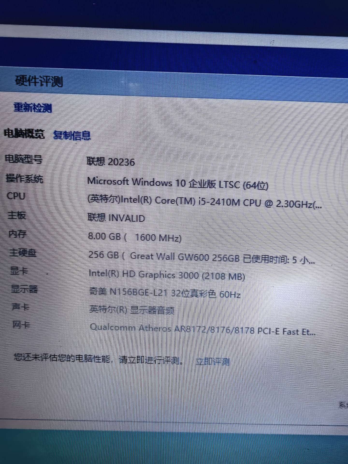 8成新 酷睿2代i5 2410m cpu 8G内存 全新256G固态硬盘 15.6寸屏 适合商务办公 看个视频 一般小游戏流畅运行