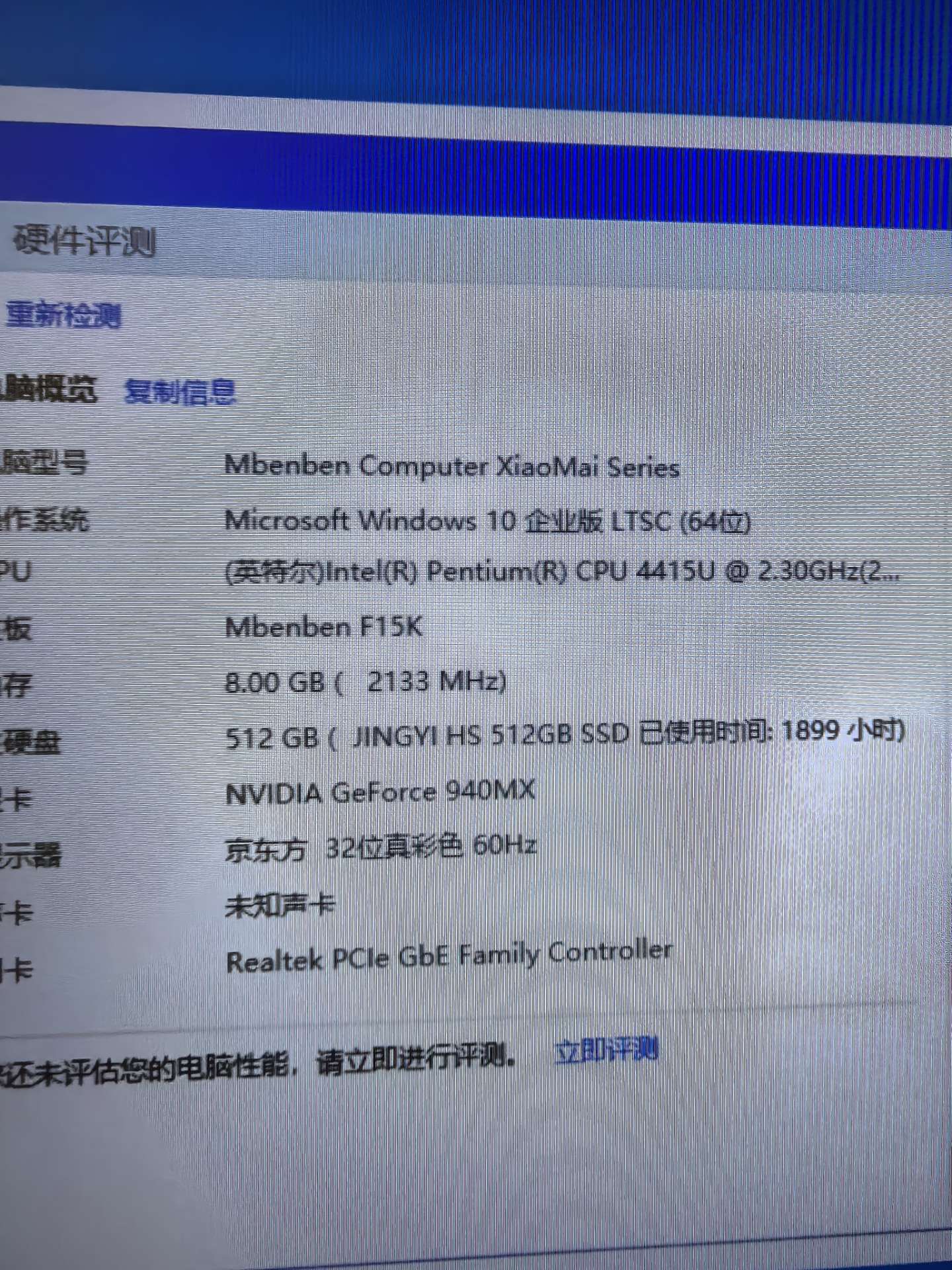 8成新 七代奔腾4415u双核四线程cpu 8G内存 512G固态硬盘 gt940mx 2G独立显卡 15.6高分屏 适合商务办公 高清影音 一般网络游戏流畅运行