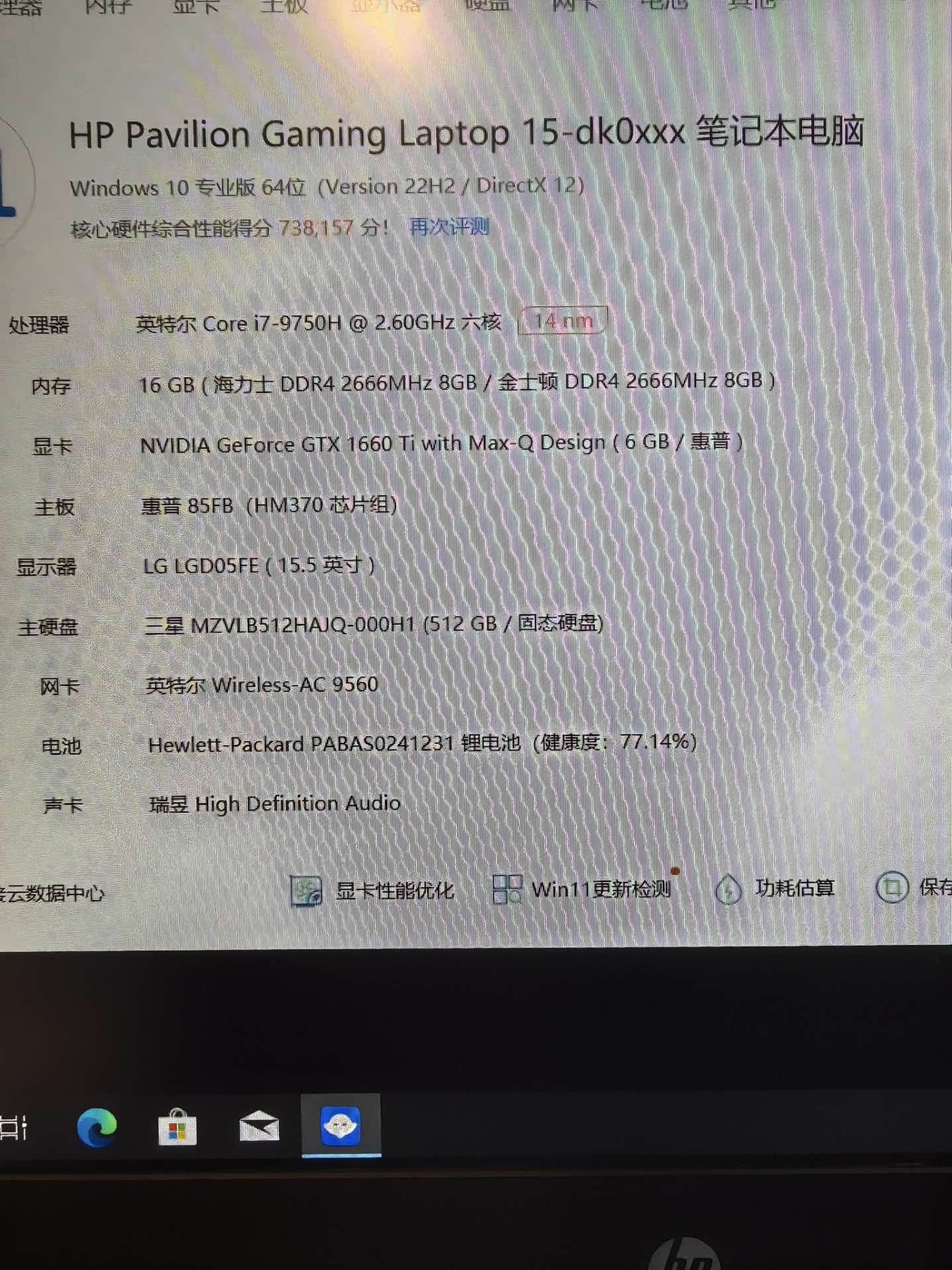 8成新 酷睿9代i7 9750h 16G内存 512G固态硬盘 gtx1660ti 6G独立显卡 15.6高分ips屏 适合商务办公 高清影音 网络游戏流畅运行