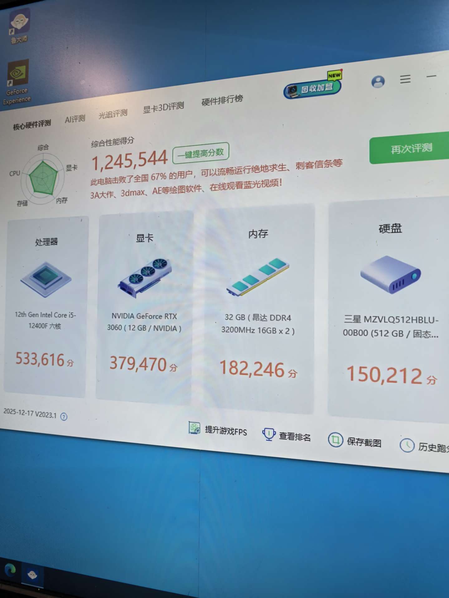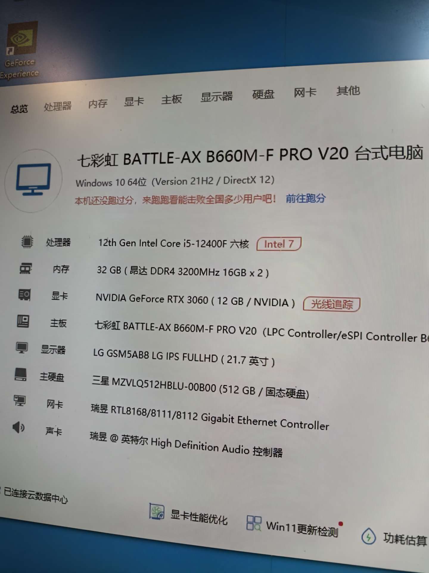 99新 酷睿12代i5 12400f cpu 七彩虹b660m主板 全新d4 3200 16x2 32G内存 三星512G nvme固态硬盘 七彩虹rtx3060 12G独立显卡 额定500W电源 侧透机箱