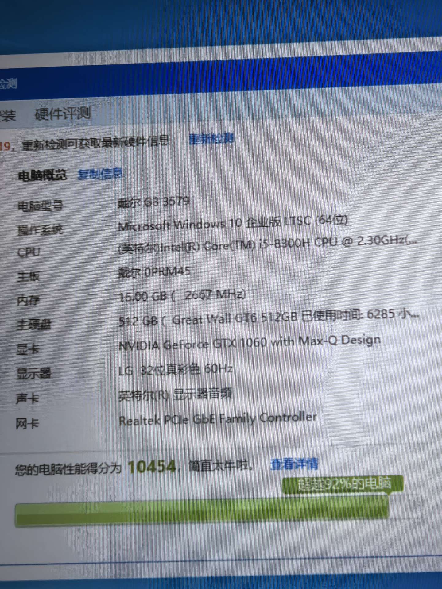 8成新 酷睿8代i5 8300h 16G内存 512g固态硬盘 gtx1060 6G独立显卡 15.6高分屏 适合商务办公 高清影音 网络游戏流畅运行