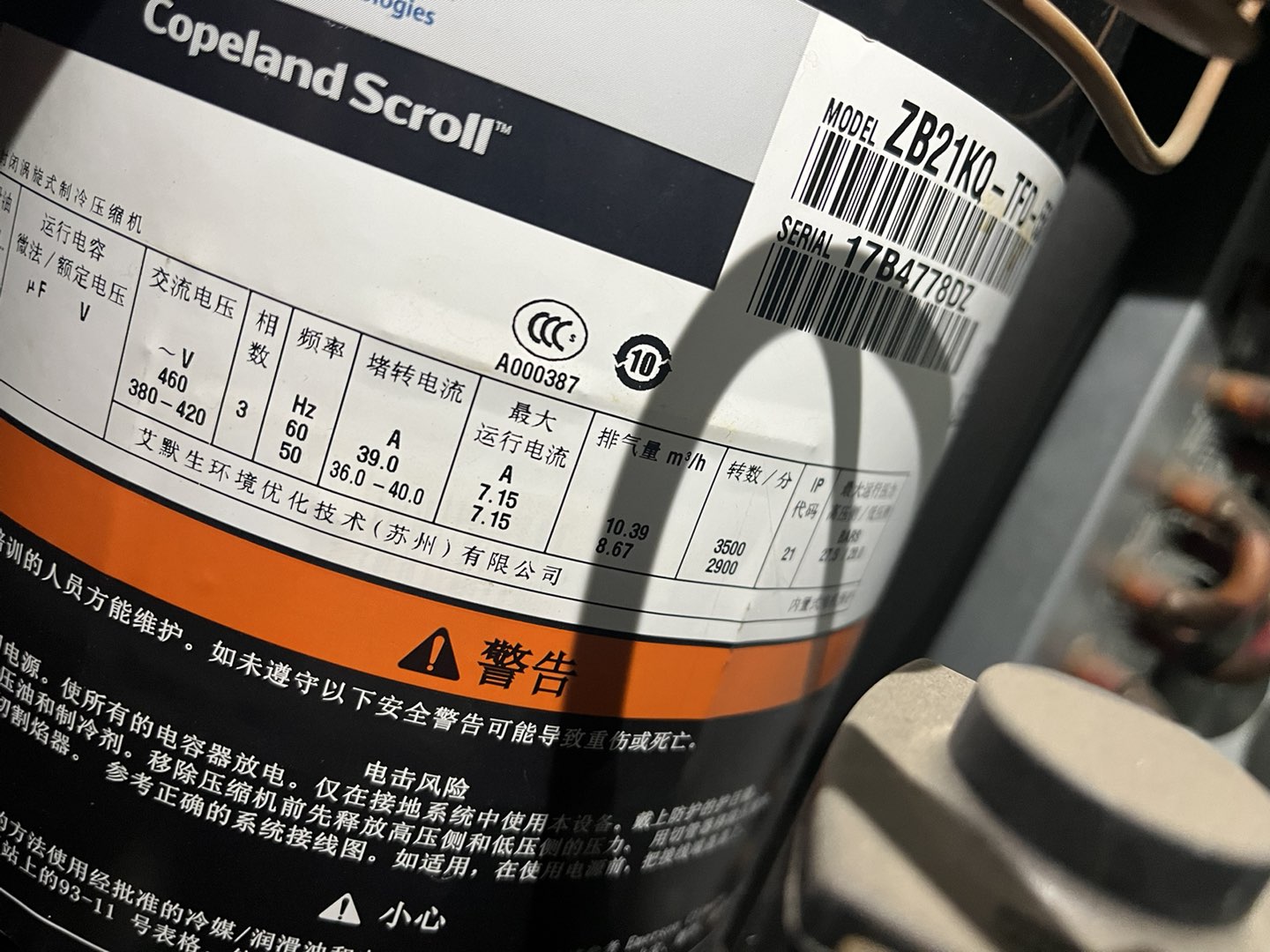 长3.9米、宽2.8米、高2米,3匹外机