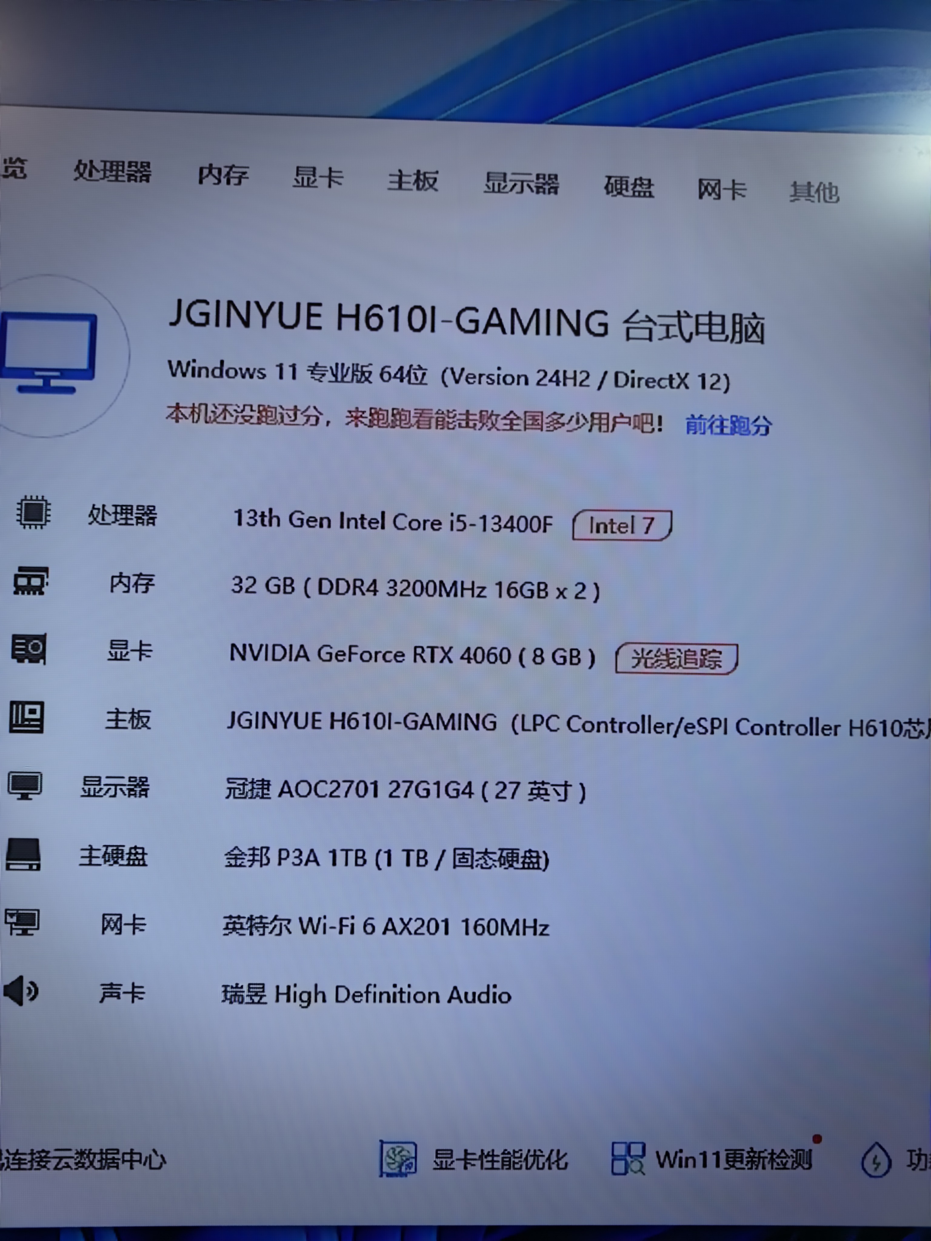 全新配件质保全 itx小主机 酷睿13代i5 13400f cpu 精粤h610itx主板 长城d4 3200 16x2 32G内存 金邦1T nvme固态硬盘 盈通rtx4060 8G独立显卡 玄武额定500W itx电源 蜂鸟itx机箱