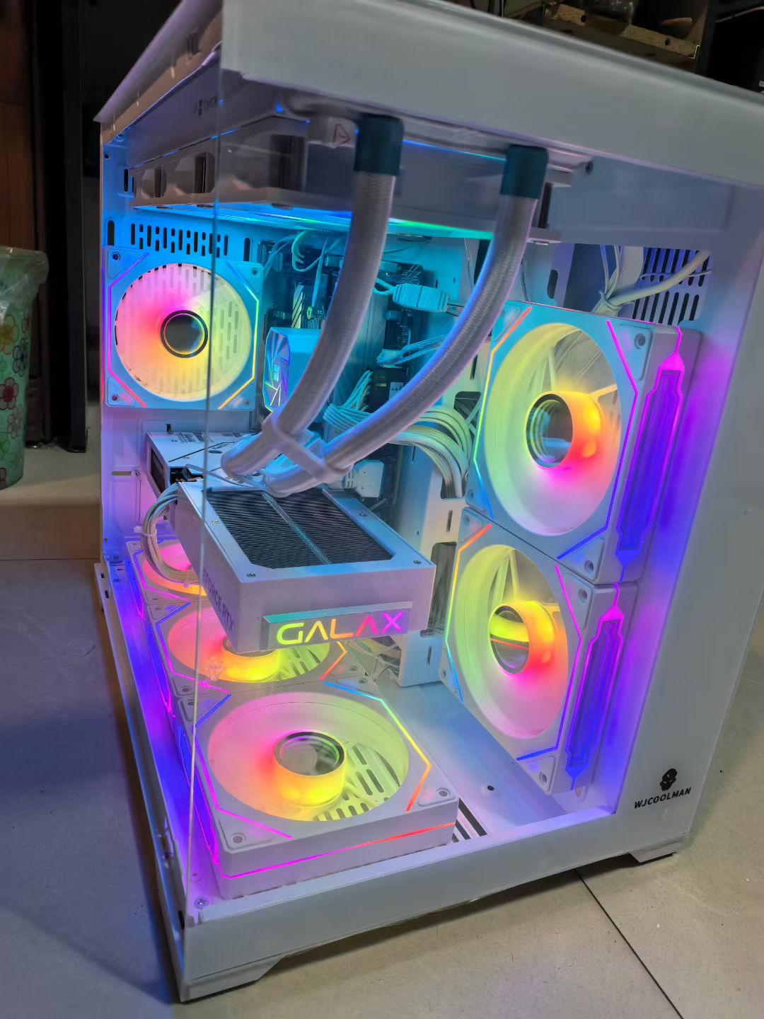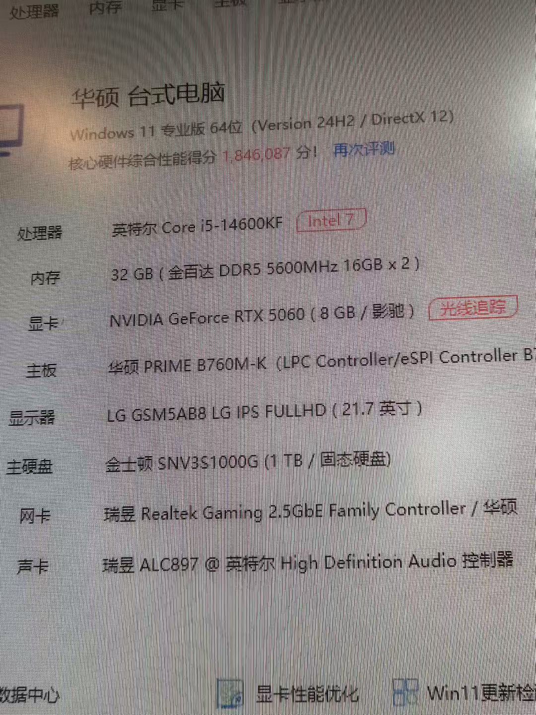 全新配件 质保全 酷睿14代i5 14600kf cpu 利民360水冷散热器 华硕b760m d5主板 金百达d5 16x2 32G内存 金士顿1T nvme固态硬盘 影驰rtx5060 8G独立显卡 战斧t6 额定600W电源 海景房机箱