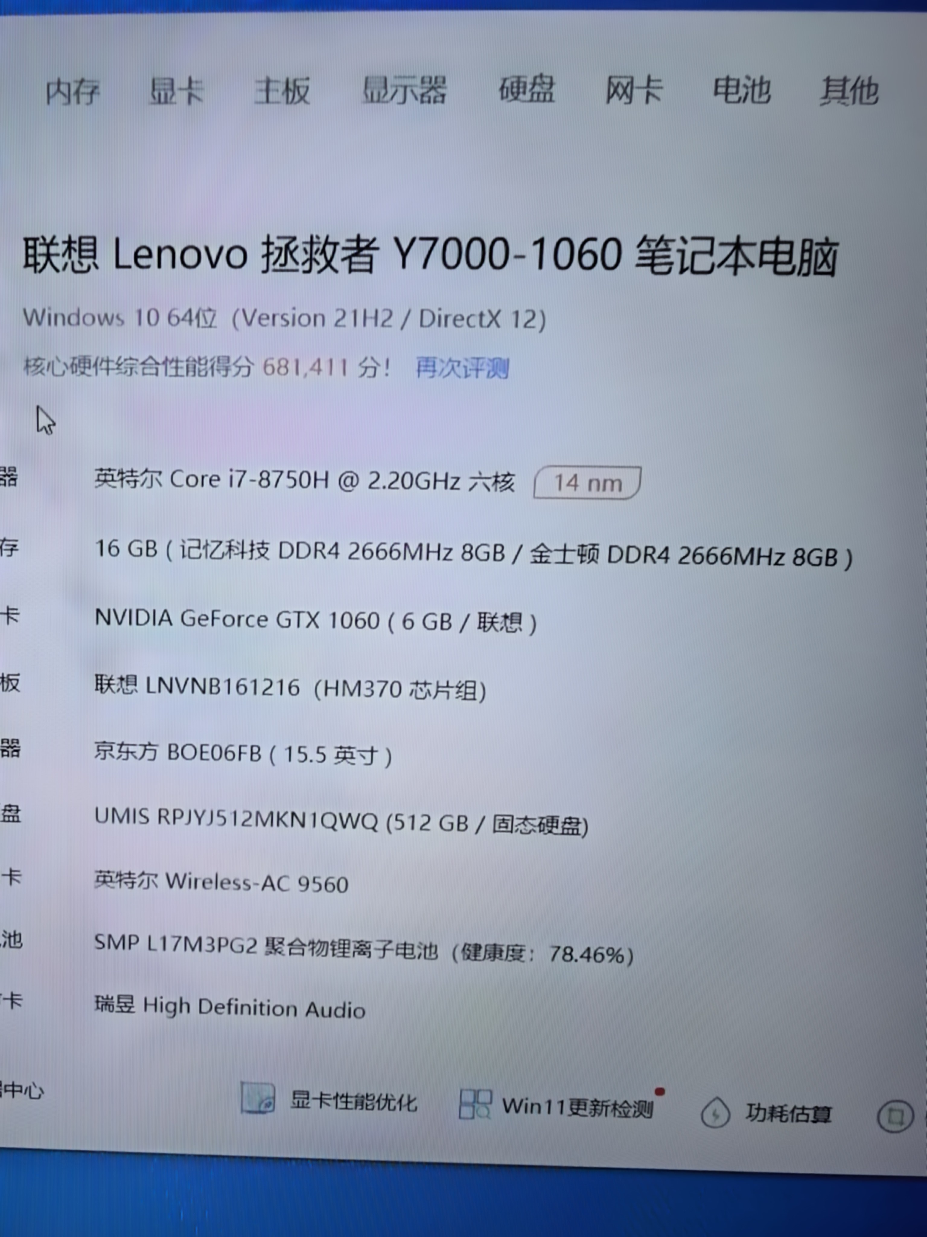 8成新 酷睿8代i7 8750h 16G内存 512G固态硬盘 gtx1060 6G独立显卡 15.6高分电竞屏 适合商务办公 高清影音 网络游戏流畅运行