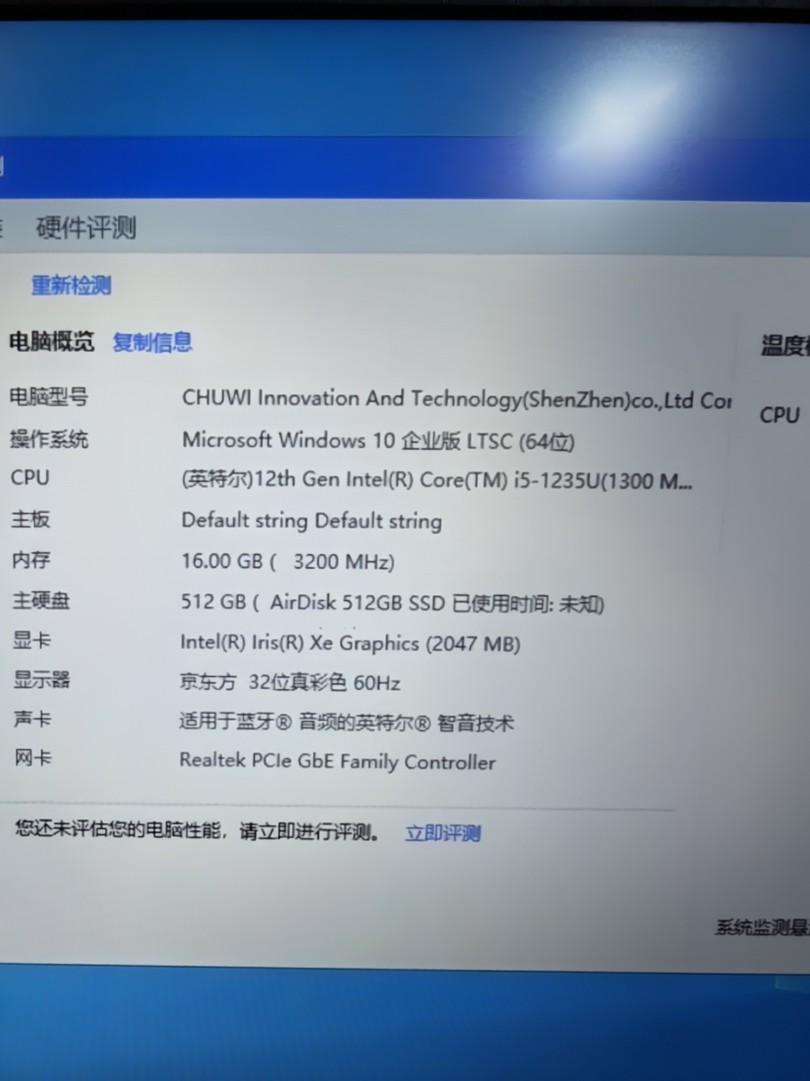 9成新 酷睿12代i5 1235u 16G内存 512G固态硬盘 15.6高分ips屏 适合商务办公 高清影音 一般网络游戏流畅运行