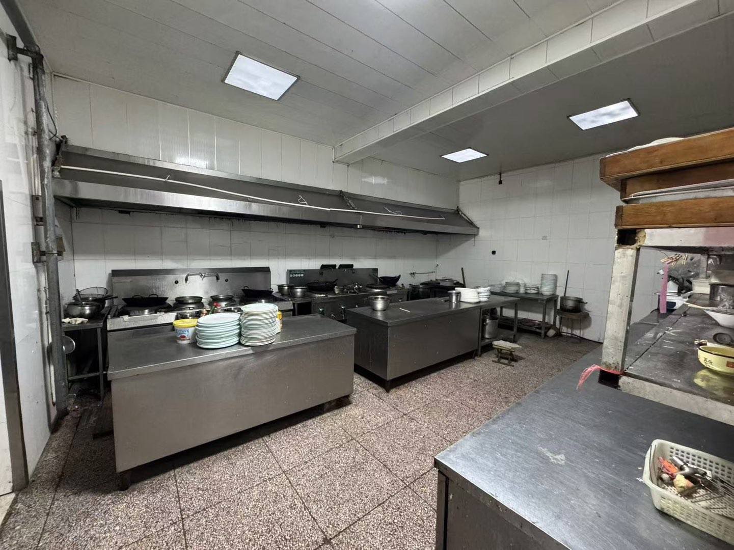 一楼有200平的大空间,二楼14间独立包间,三楼500平的宴会厅,另外还加装了电梯,不管做啥都够用。院里带5间宿舍,水电卫生间都有,后厨设备、独立冷库齐全,不用再添东西,接手就能用。