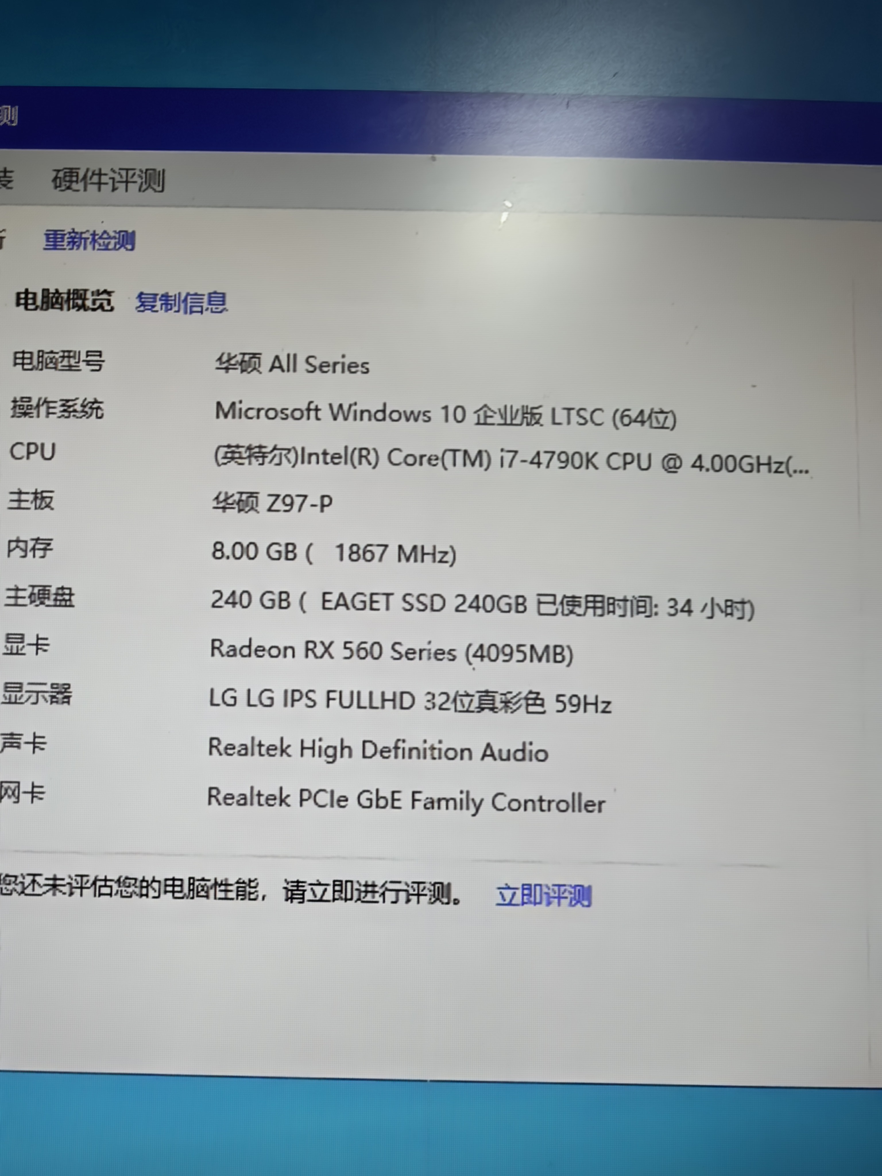 8成新 酷睿4代i7 4790k cpu 华硕z97-p主板 8G内存 240G固态硬盘 rx560 4G独立显卡 额定600W电源 侧透机箱 适合商务办公 高清影音 一般网络游戏流畅运行