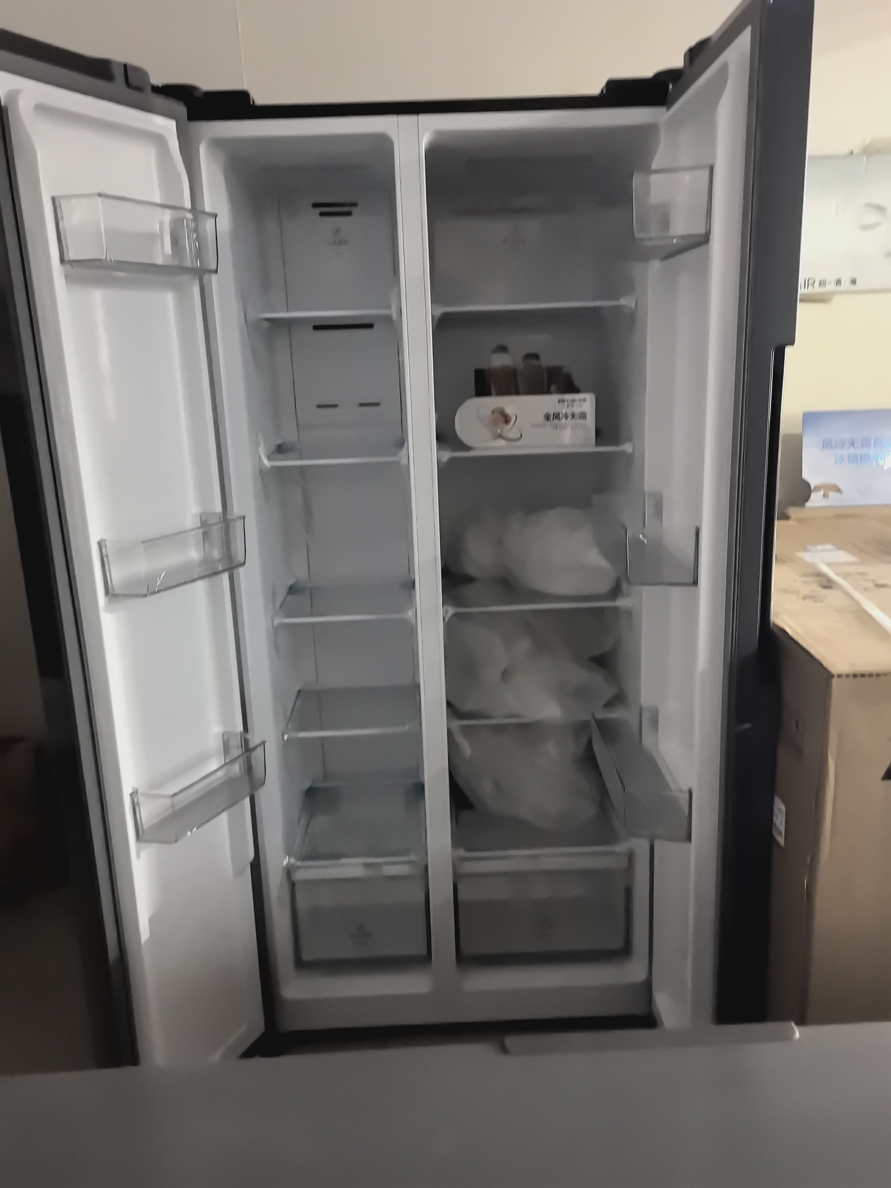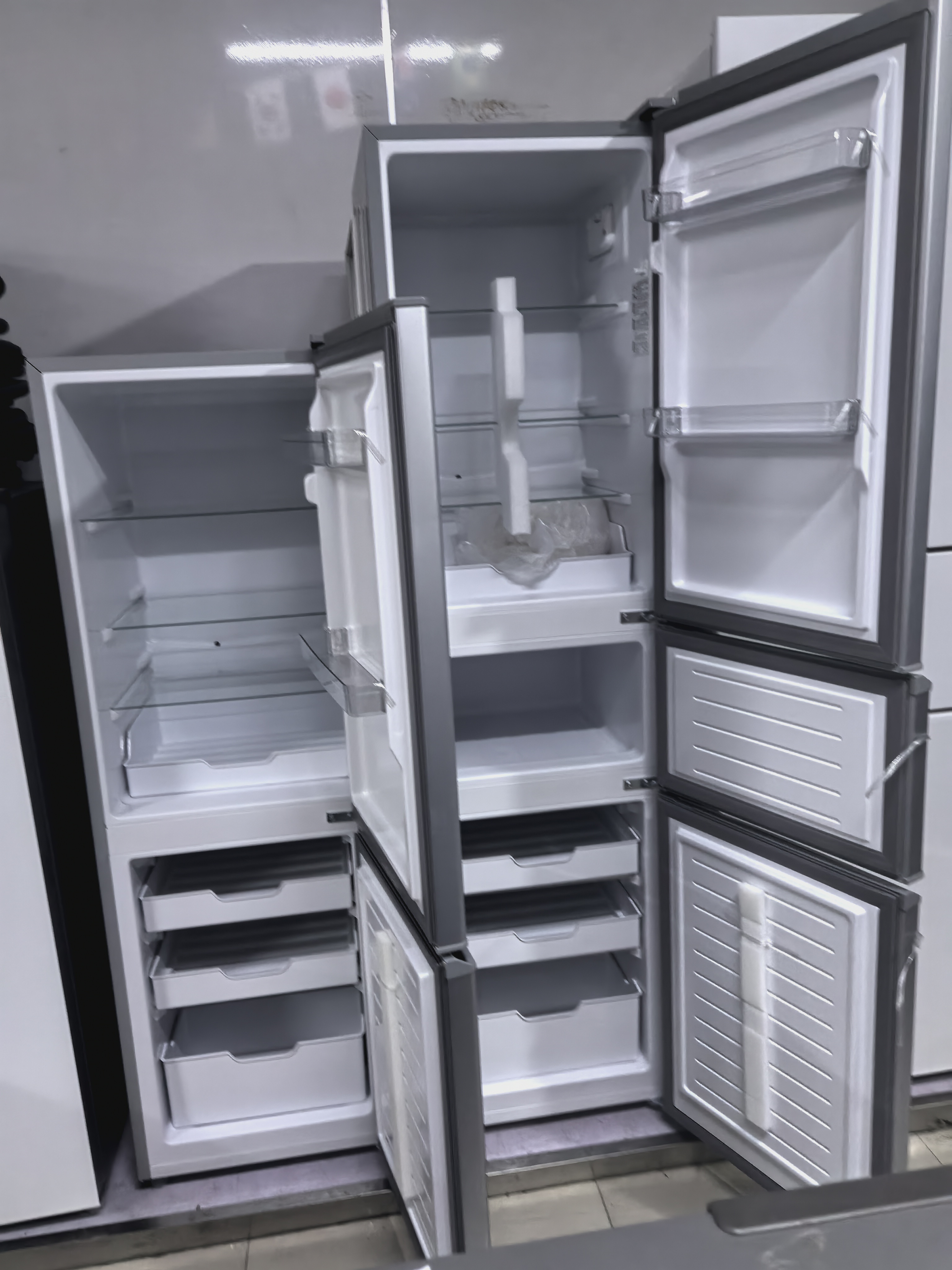 全新183 升两门高度142厘米左右,以旧换新价499元,全新200升三门冰箱高度170厘米左右,以旧换新价599元,有需要的速度了,库房还有十来台,不墨迹一口价,讲价的墨迹的绕行!全新小米五百升对开门风冷冰箱智能双变频一级能效,换新价1499元!海尔620升超大冰箱微瑕疵全新机,换新价1899元!