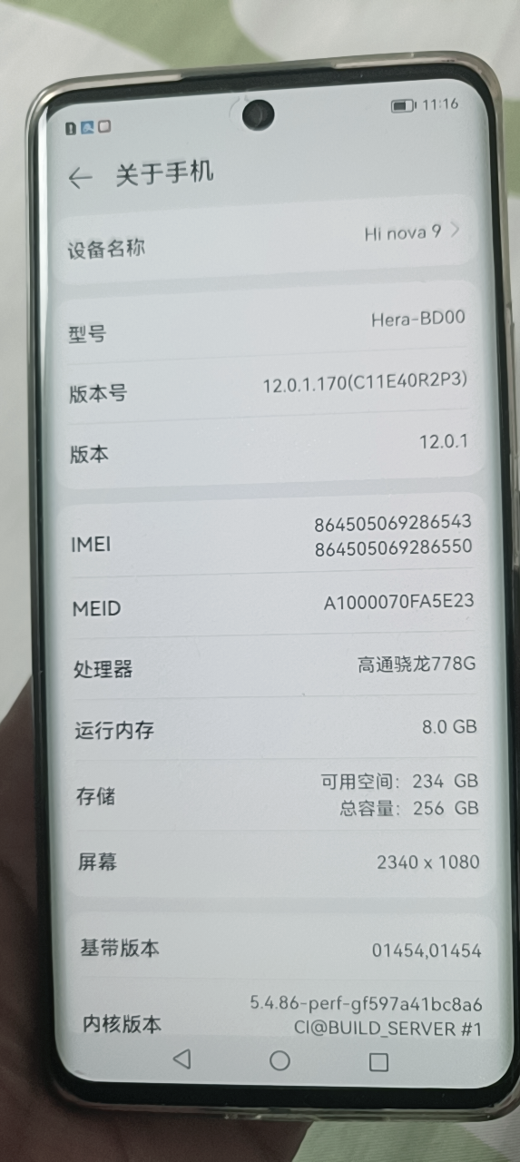 华为Hinova9,内存8+256