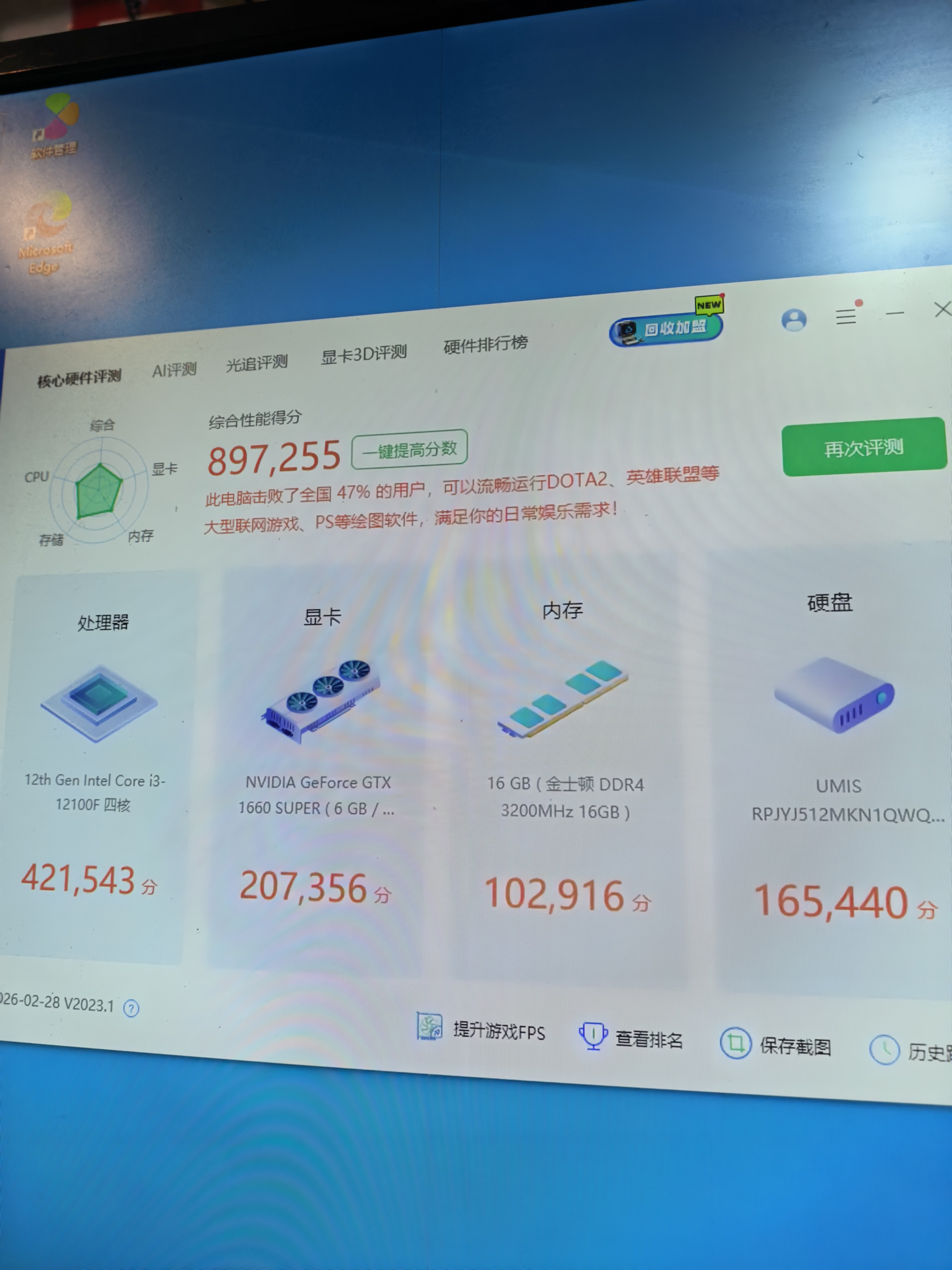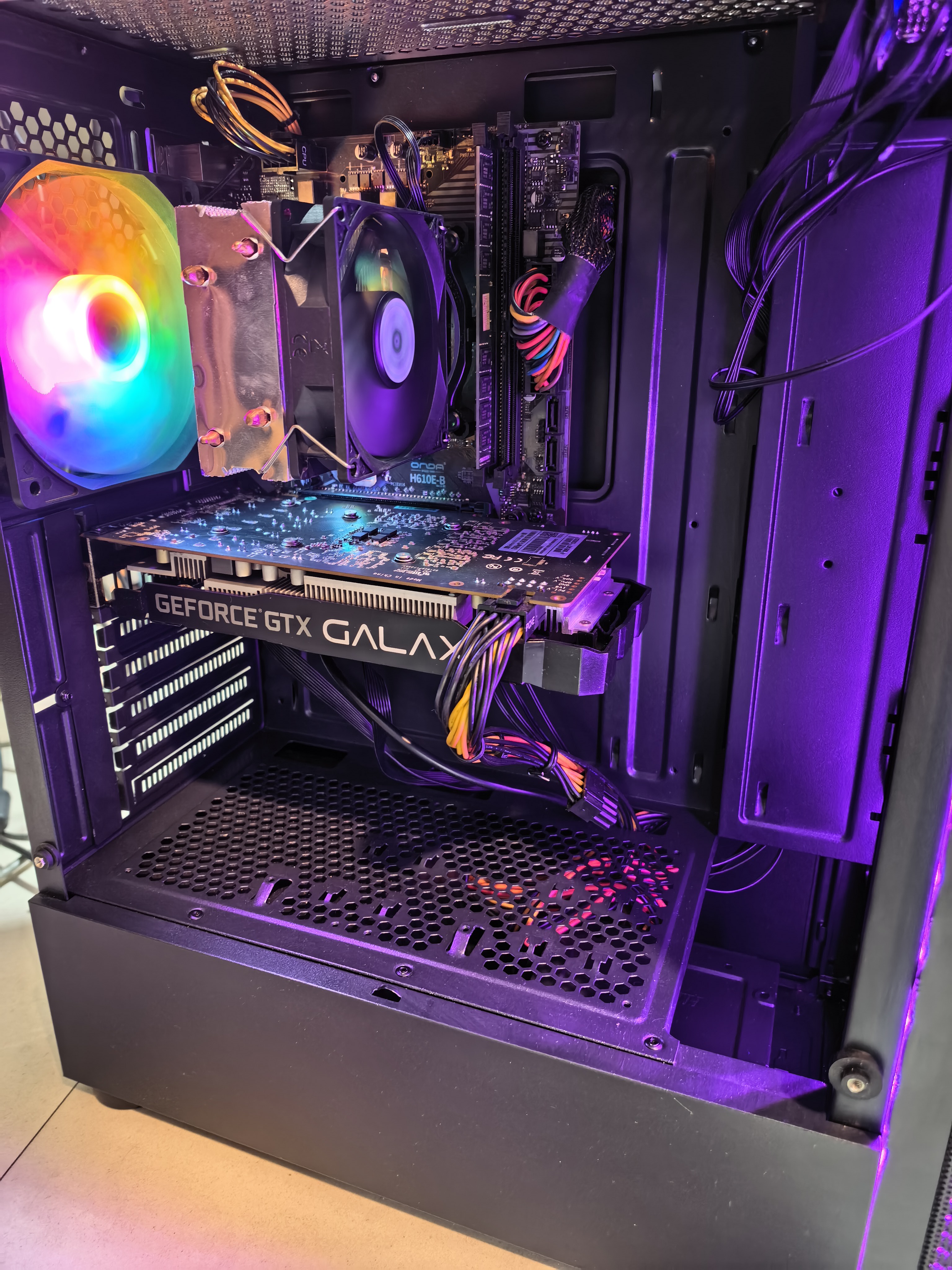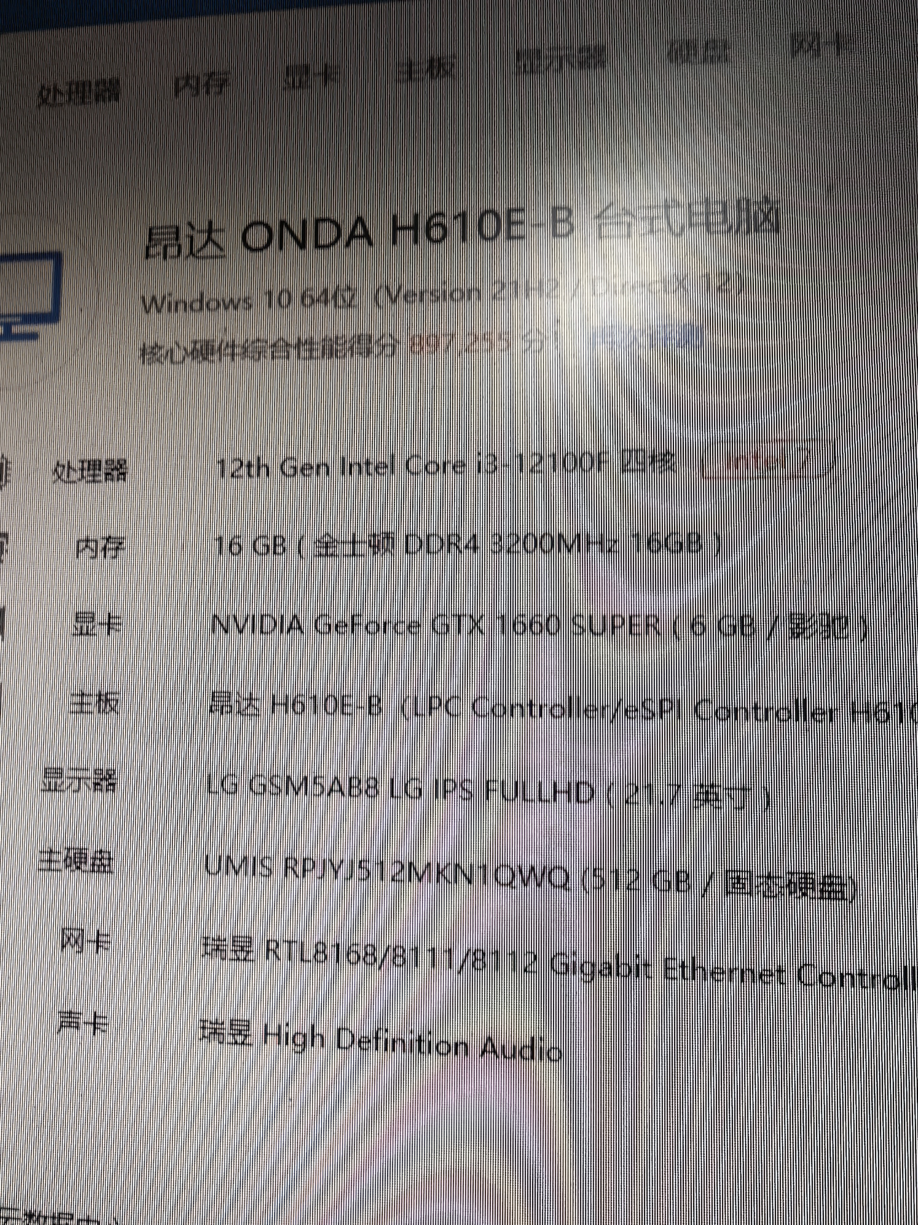 95成新 酷睿12代i3 12100f cpu 昂达h610主板 16G内存 512Gnvme固态硬盘 gtx1660super 6G独立显卡 额定500w电源 侧透机箱
