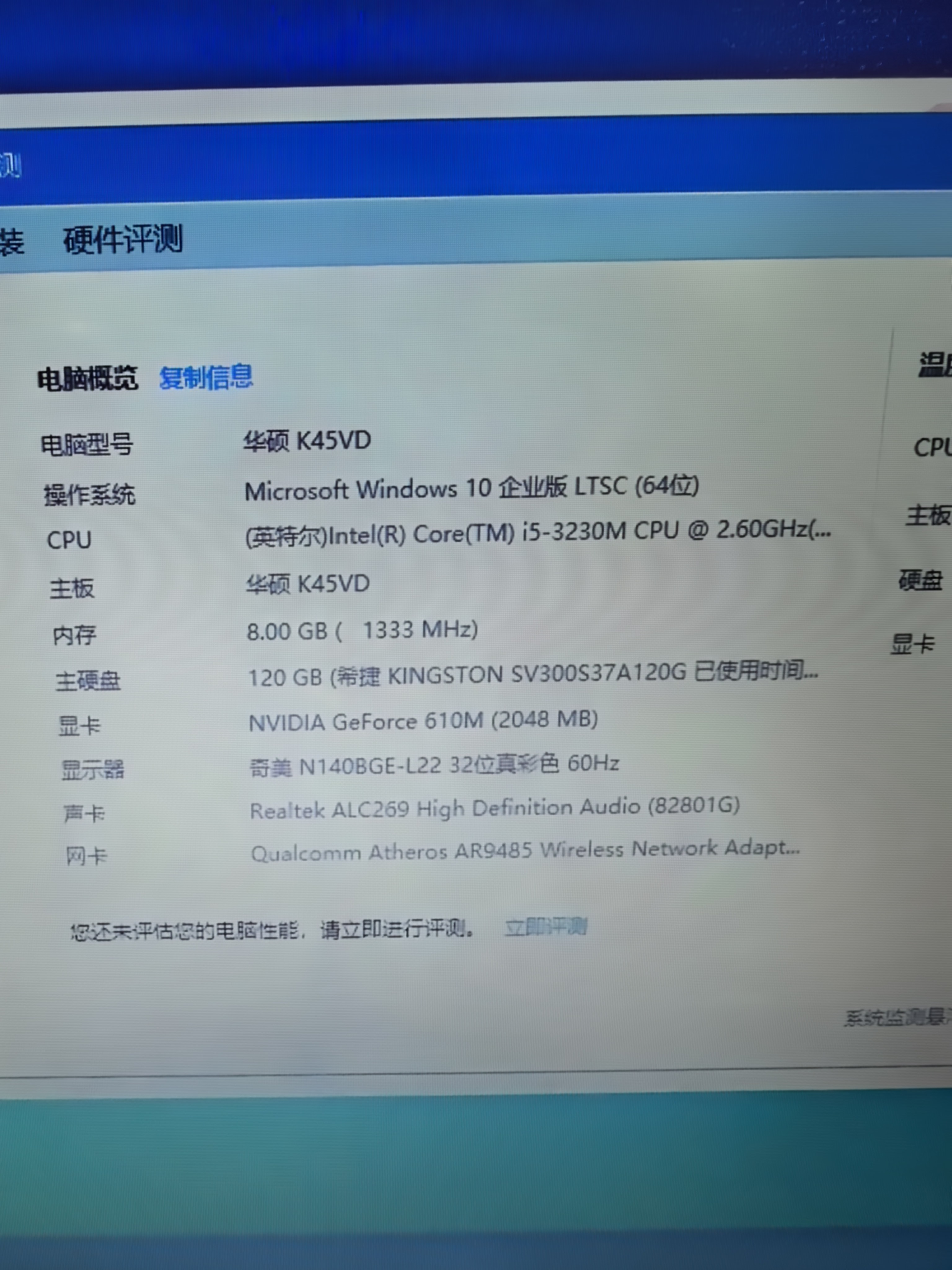 8成新 酷睿3代i5 3230m 8G内存 120G固态硬盘 gt610m 2G独立显卡 14寸屏 适合办公 看个视频 一般小游戏流畅运行
