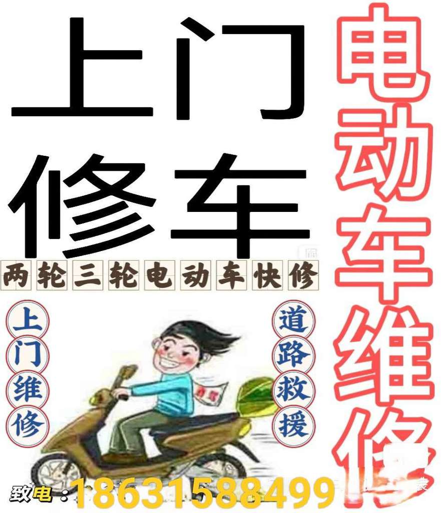 电动车维修 升级 更换电瓶(可上门安装) 电动车任何问题无法行走,可救援 救援时间 (早7点-----晚10点), 其他时间段勿扰 有疑问,随时联系18631588499;
