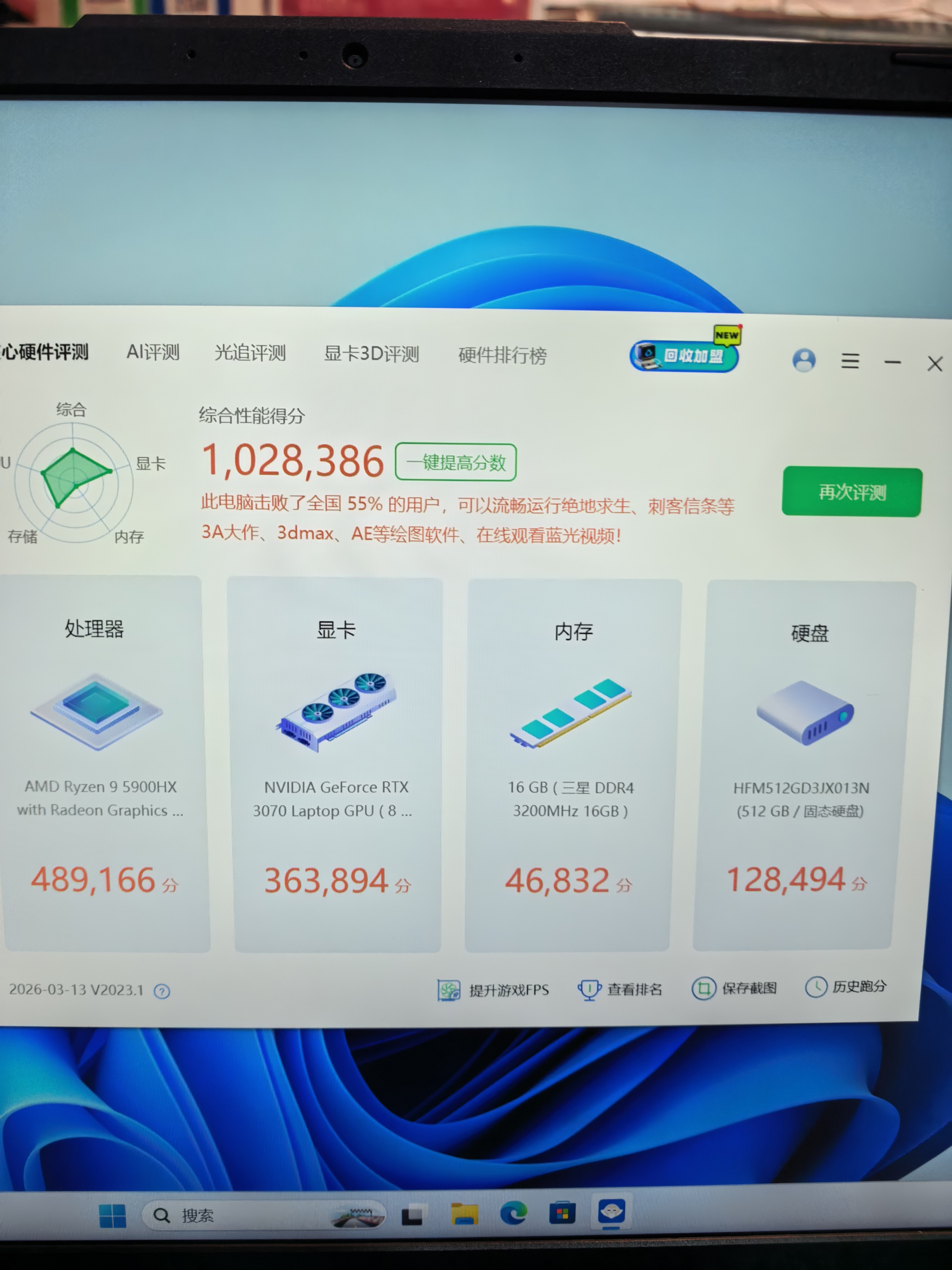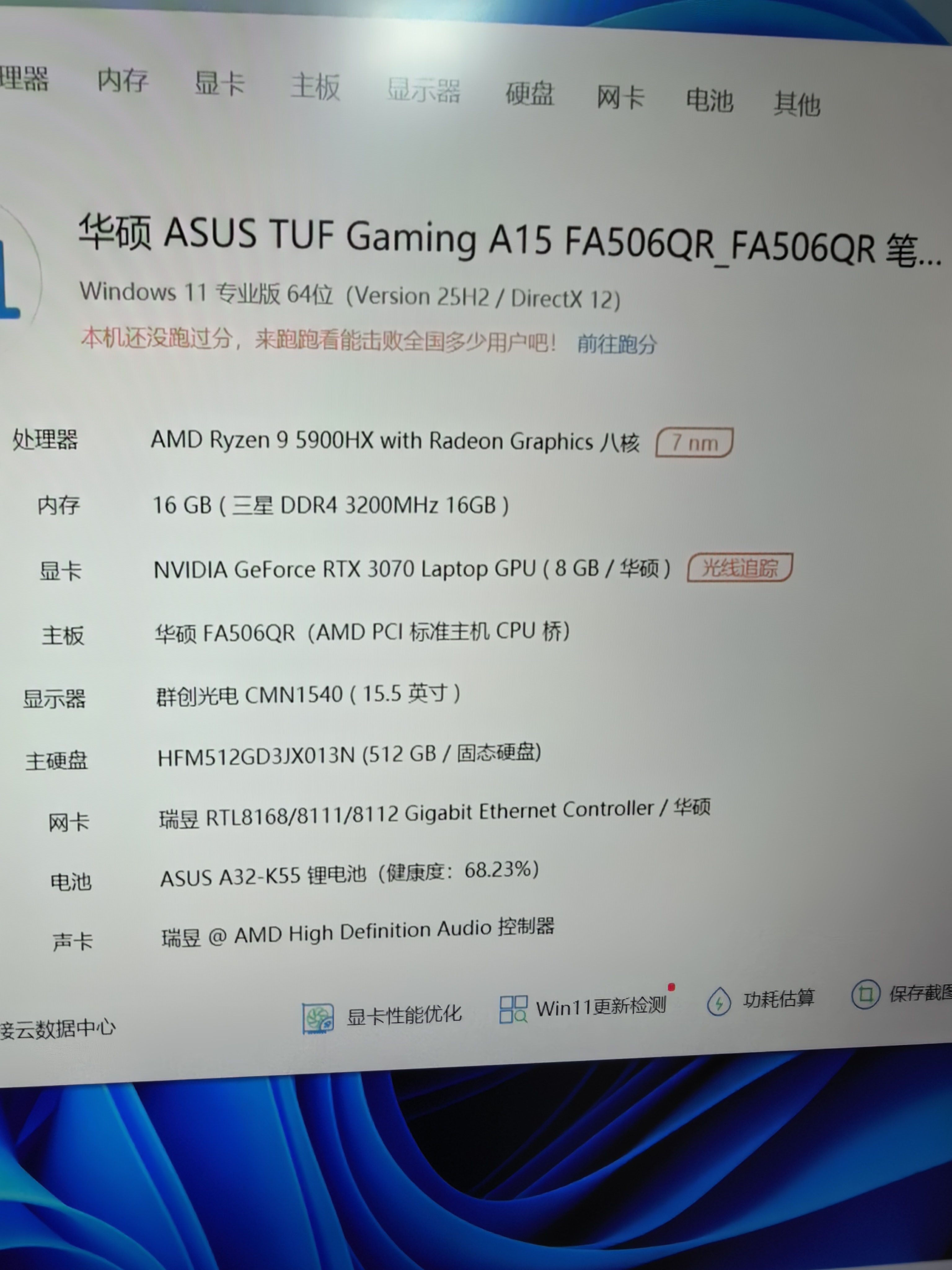 9成新 锐龙r9 5900hx八核cpu 16G内存 512G固态硬盘 rtx3070 8G独立显卡15.6 2k电竞屏 适合商务办公 高清影音 网络游戏流畅运行
