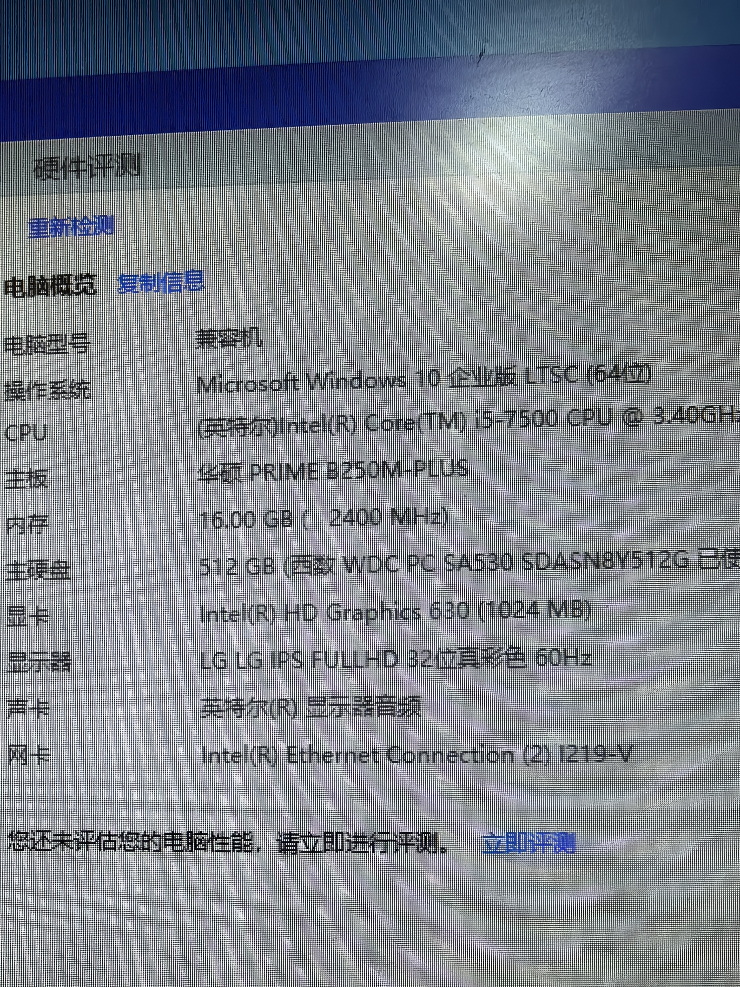8成新 酷睿7代i5 7500 华硕b250主板 16G内存 512G m.2硬盘 额定300W电源 商务机箱 适合商务办公 高清影音 一般小游戏流畅运行