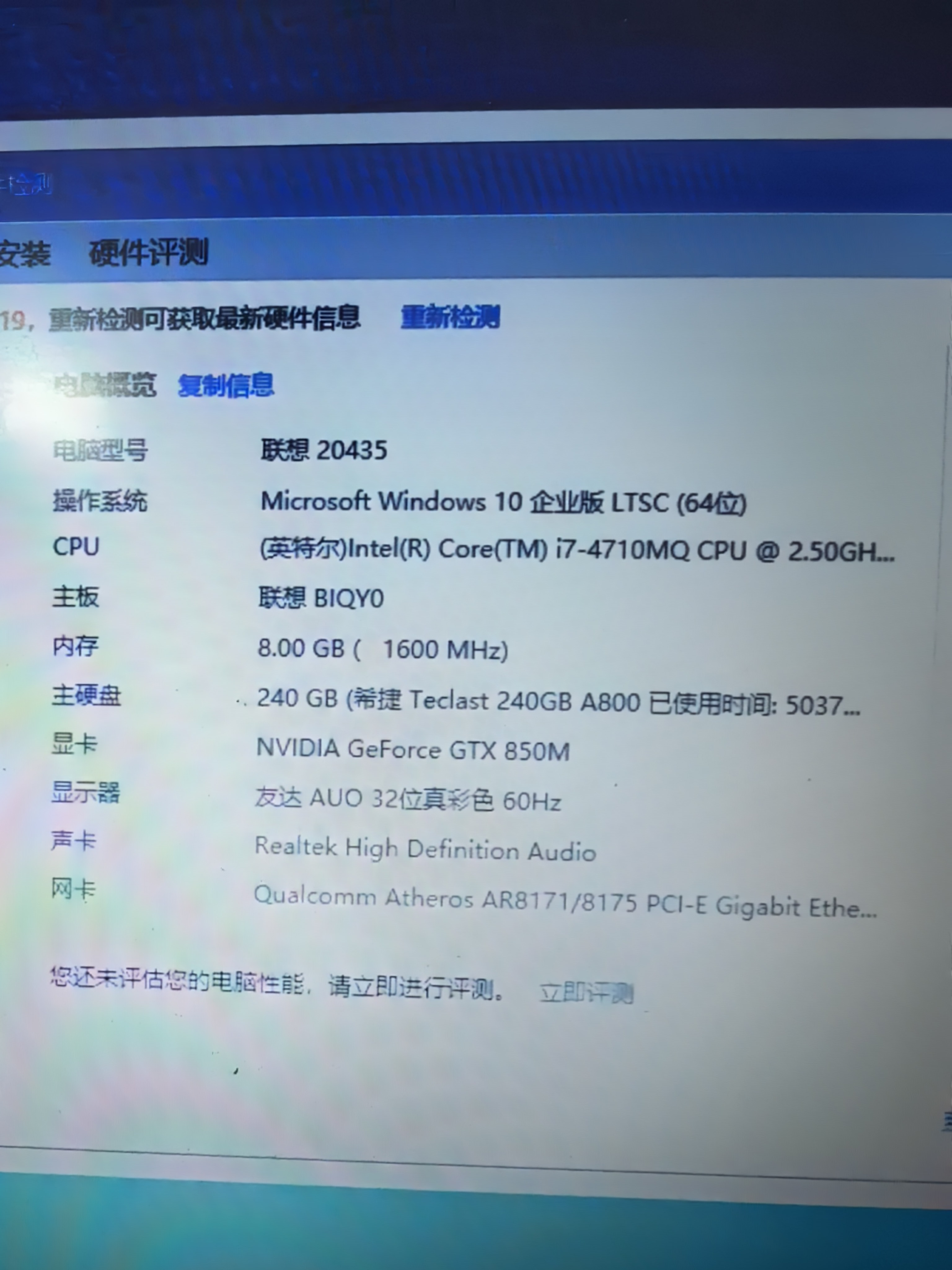 8成新 酷睿4代i7 4710mq 8G内存 240G固态硬盘 gt850m 2G独立显卡 14寸屏 适合商务办公 高清影音 一般网络游戏流畅运行