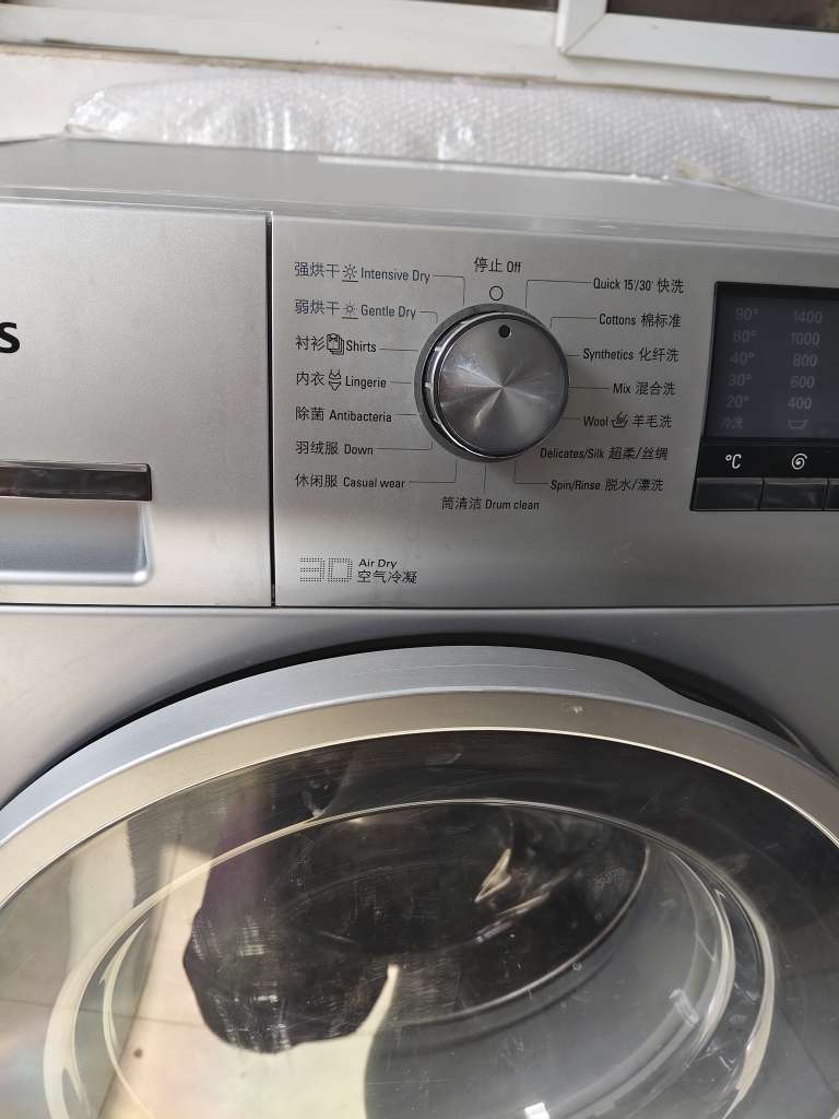 西门子进口滚筒洗衣机,iQ500系列,洗烘一体机,专卖店8600元购买功能完全正常,空气冷凝烘干,操作简单随洗随穿,非常静音,支持棉、化纤、羊毛、羽绒服等多种洗涤模式,内桶干净,原装正品无拆无修,插电即用。楼房长期不居住,几乎没用几次一直闲置,有意者联系