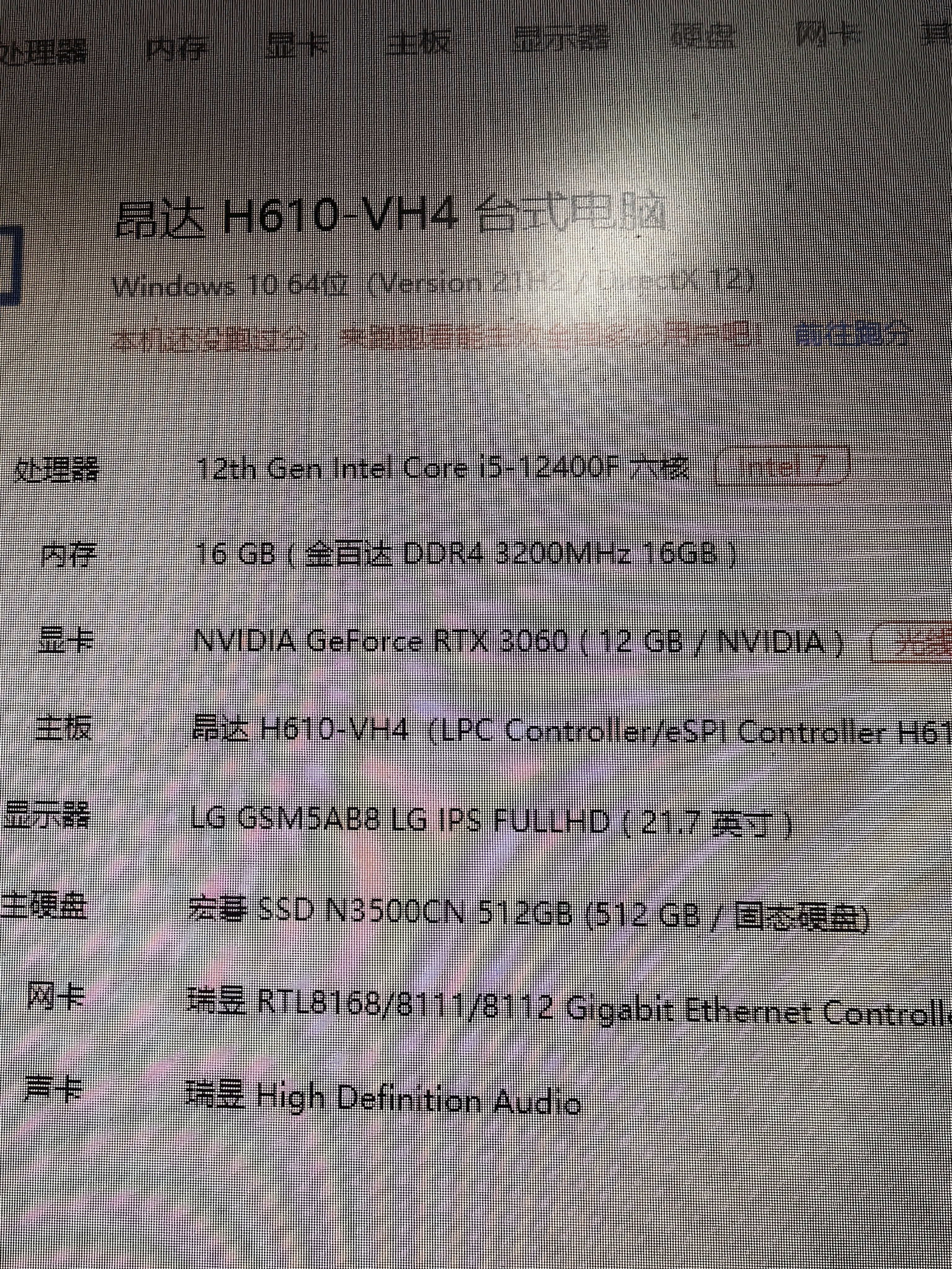 全新配件 质保全 酷睿12代i5 12400f cpu 利民360水冷散热器 昂达h610主板 金百达d4 3200 16G内存 宏碁512G nvme固态硬盘 盈通rtx3060 12G独立显卡 鑫谷额定650W电源 海景房机箱