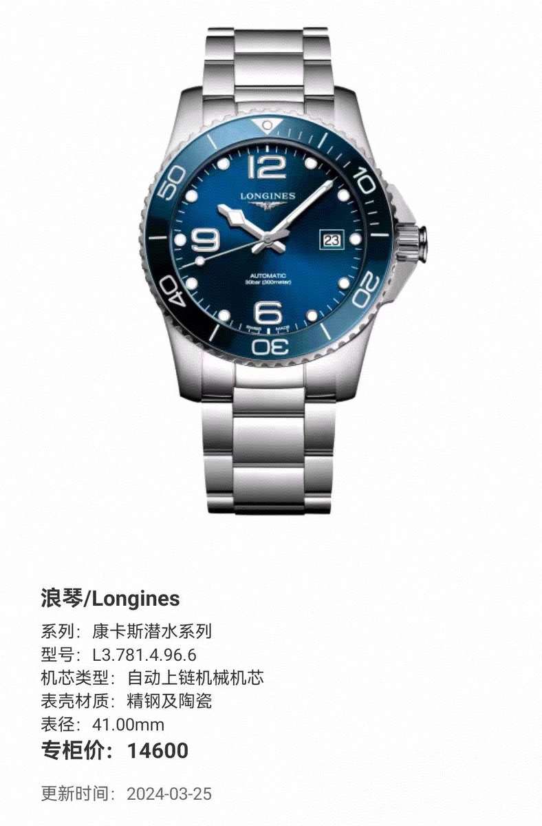 此款手表为浪琴经典款,商务、运动均好搭配,大气美观,经济耐用,一表传N代,超保值!