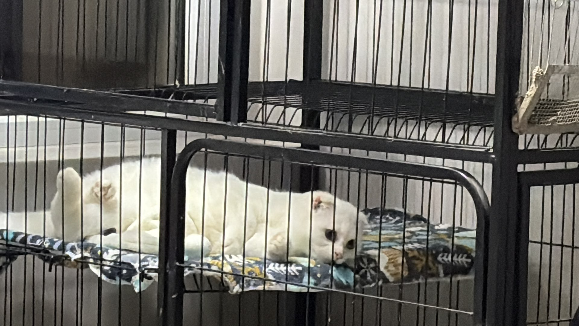免费领养两只猫,大猫是最后一张 大猫全身白色 常年流一点鼻涕 治不好不会传染,小猫只有头上一点灰色 6月一号出生,两只猫性格都很好,因为我长期没时间管,只能把它们放在笼子里。想找一个爱心有责任心的,不要虐待猫,能陪他们玩,或者不要长期让他们在笼子里关着的主人。如果之后不想养可以给我拿回来!千万不要让他们流浪,大猫是我去年捡的流浪猫,做过检查没有传染病,流鼻涕是之前流浪冻的一直也不好,检查过不是猫鼻支!帮他们寻找一个好家庭