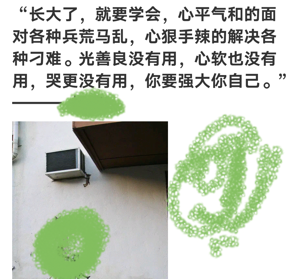 人生如棋,落子无悔,我经常会在睡不着的时候反思,反思我走过的路,我做过的选择,我也会在某一瞬间觉得自己走错了很多路,但它都成为我人生宝贵的经历。 任何人与事给予的经历,不是得到就是学到,以前心心念念的东西现在不想要了,以前较真的东西现在不在乎了,我很感谢生活赋予我的一切惊慌失措,我也始终相信人生没有白走的路,也许真正的成长不是焦虑的自我怀疑,而是平静的自我接納。 我手就那么大,握不住的东西太多,我爱笑、爱瞎想、也容易感动、容易满足、谁对我好一点,就会记在心里,有时候我也没记性,好了伤疤忘了疼。我不优秀,但我善良,认定的东西就会尽全力去守候,很多时候,尽力之后,聚散随缘,不强求,习惯任何人的忽冷忽热,渐行渐远,学会好好爱自己。 人间最大的悲哀就是:这不是我想要的生活,却是我自找的生活;有些伤痛:何可言、何处言,何能言;有些经历:不可说、不能说、不必说。 提起笔的时候,诸多心疼之处。有点心疼你的倔强和孤独,但山高路远,人就得一边看世界的荒凉,一边寻找自己的精彩。心疼你的无助和迷茫,但生活多艰,世间少有如愿以偿之事,多的是生活打过来的耳光,人活着就是在一地的玻璃渣子里面找糖吃,一边受伤,一边自愈。心疼你的深情和专一,但人情颠覆,每个人都在权衡利弊,义无反顾的真诚往往换得一身伤痕。人生就是跷跷板,一边是相遇的甜蜜,一边是遗忘的苦涩。人无完人,事没双全,自古瓜甜蒂苦。 亲爱的自己,知道你最近身心俱疲,生活里的诸多不如意让你不断地质疑自己否定自己,从而把自己困在方寸之间自怨自艾。像背着旧日的行囊拿着过时的车票,站在十字路口茫然无措地张望,眼里全是这个世界的陌生。每个人都有自己的生活方式,不必苛求相互理解,适合自己的才是最好的。不要怕没有人喜欢自己,怕自己的能力不够,怕把梦想坚持下去也看不到一个确定的未来,还总是怕惹周围的人不高兴,小心翼翼地看着别人的脸色过活。生活是很公平的,你得到一部分的时候,你就会失去一部分。不要过度期待好运的光顾,这样会让你看不到未来,也看不清自己。 此去经年,告个别。 和内心的千山万壑,和往事……和一身沉疴难愈的疲惫躯体。。。 晚安,每一位。。。