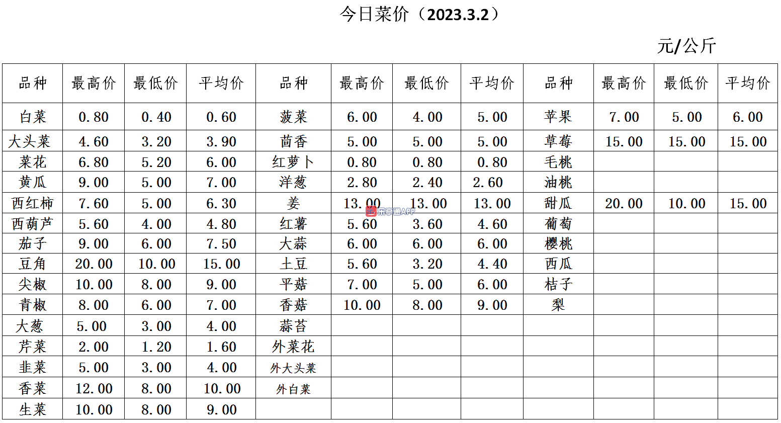 【果菜行情】3月2日乐亭县冀东果菜批发市场最新发布