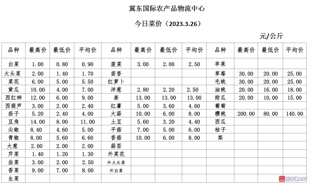 【果菜行情】3月26日乐亭县冀东果菜批发市场最新发布