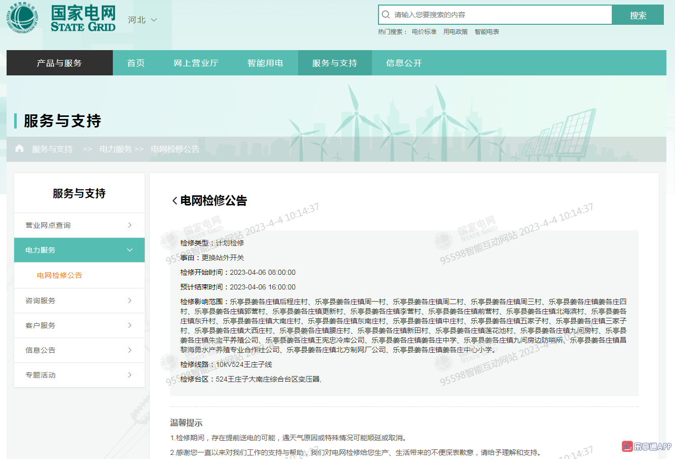 停电通知!4月6日、4月7日乐亭县这些区域计划停电8小时!相互转告!