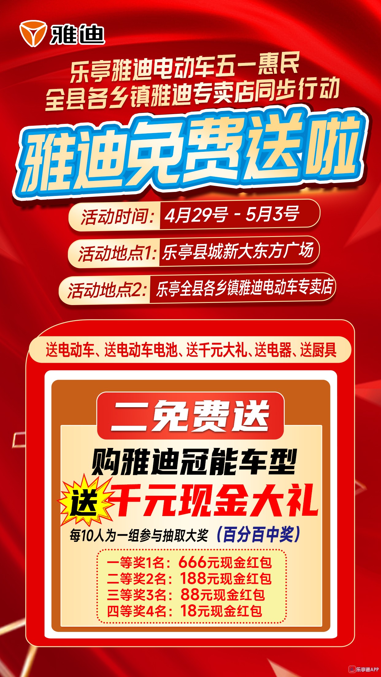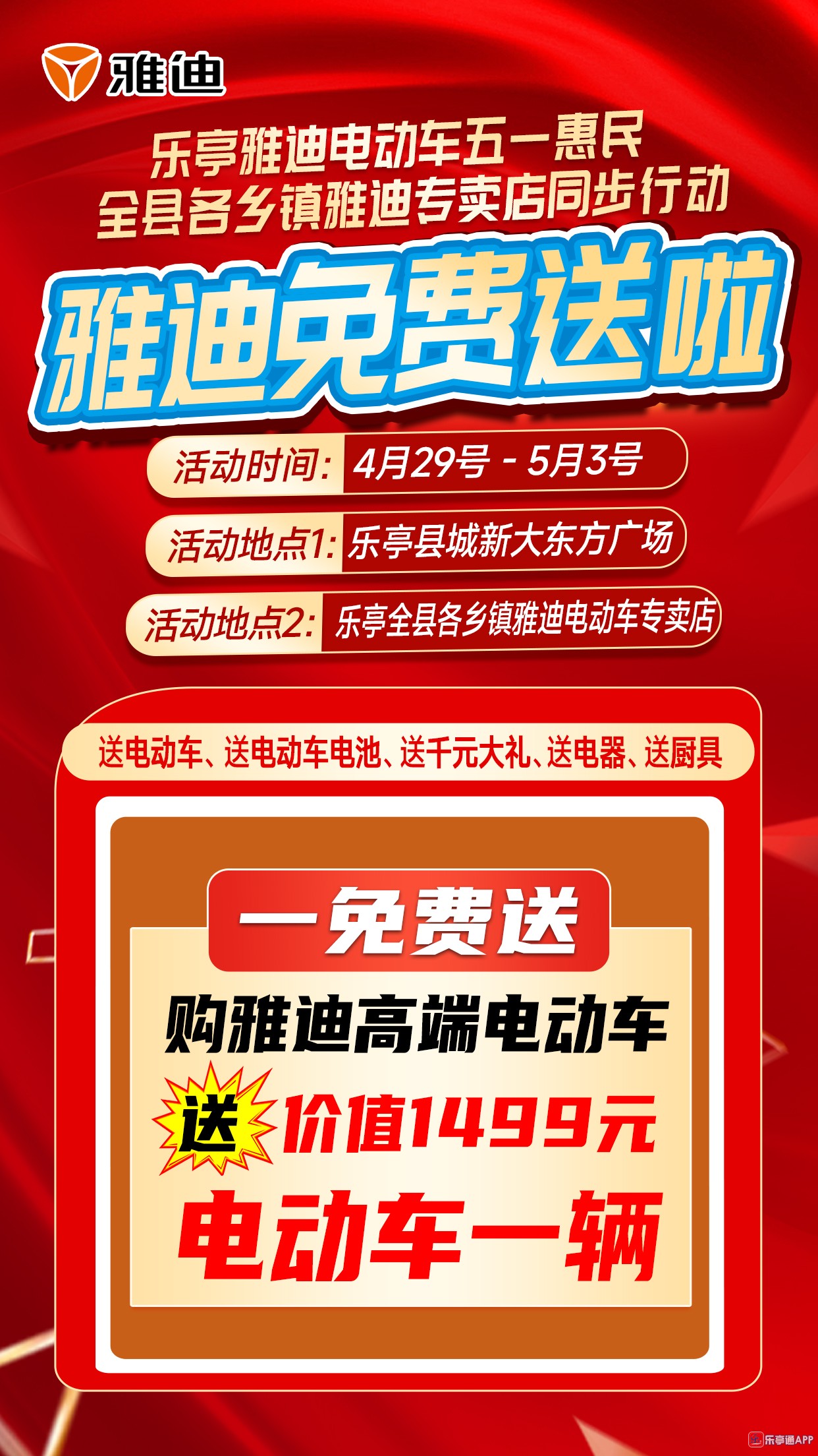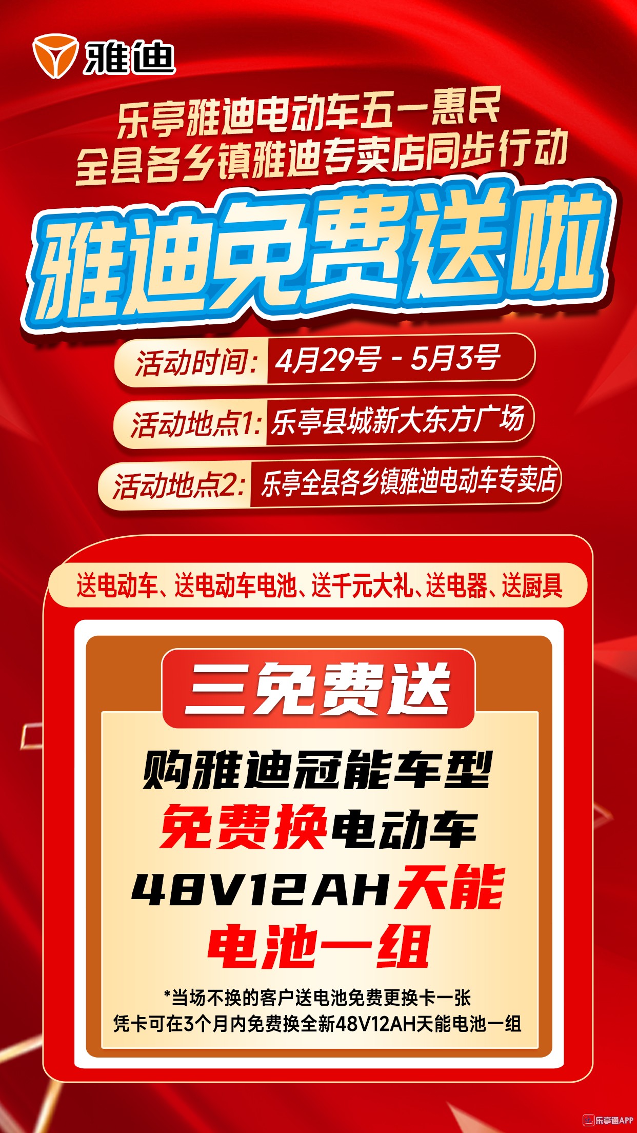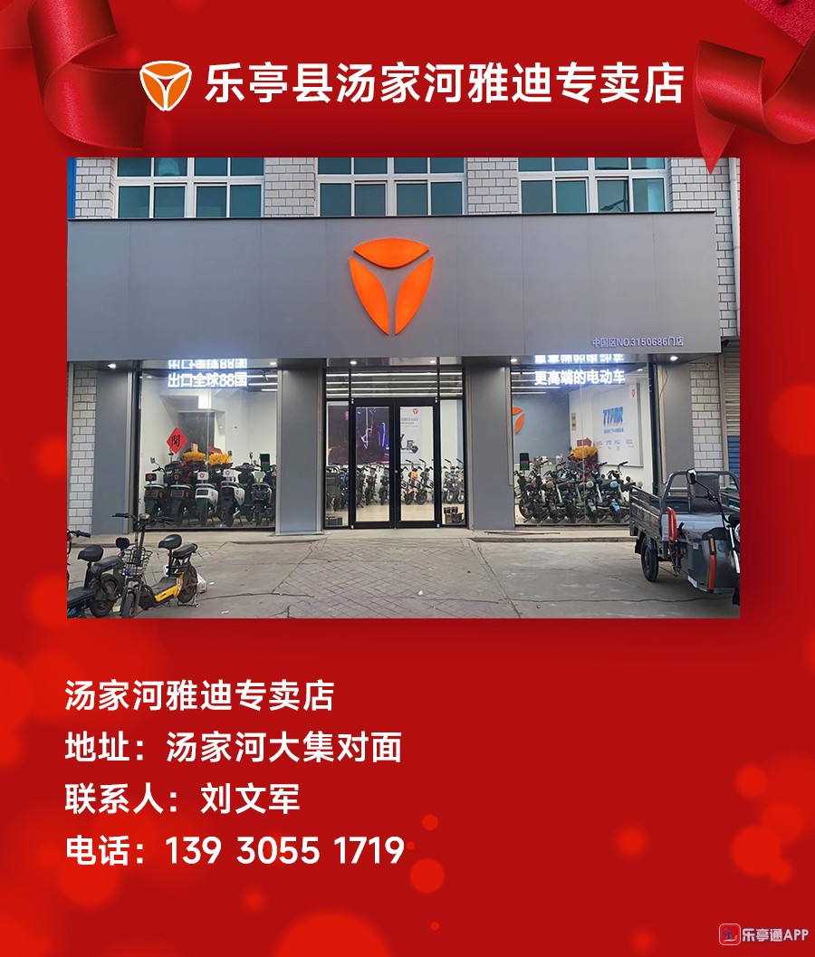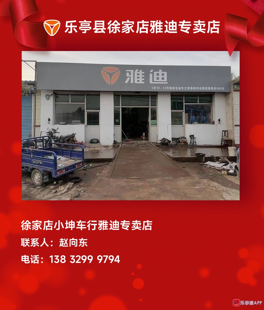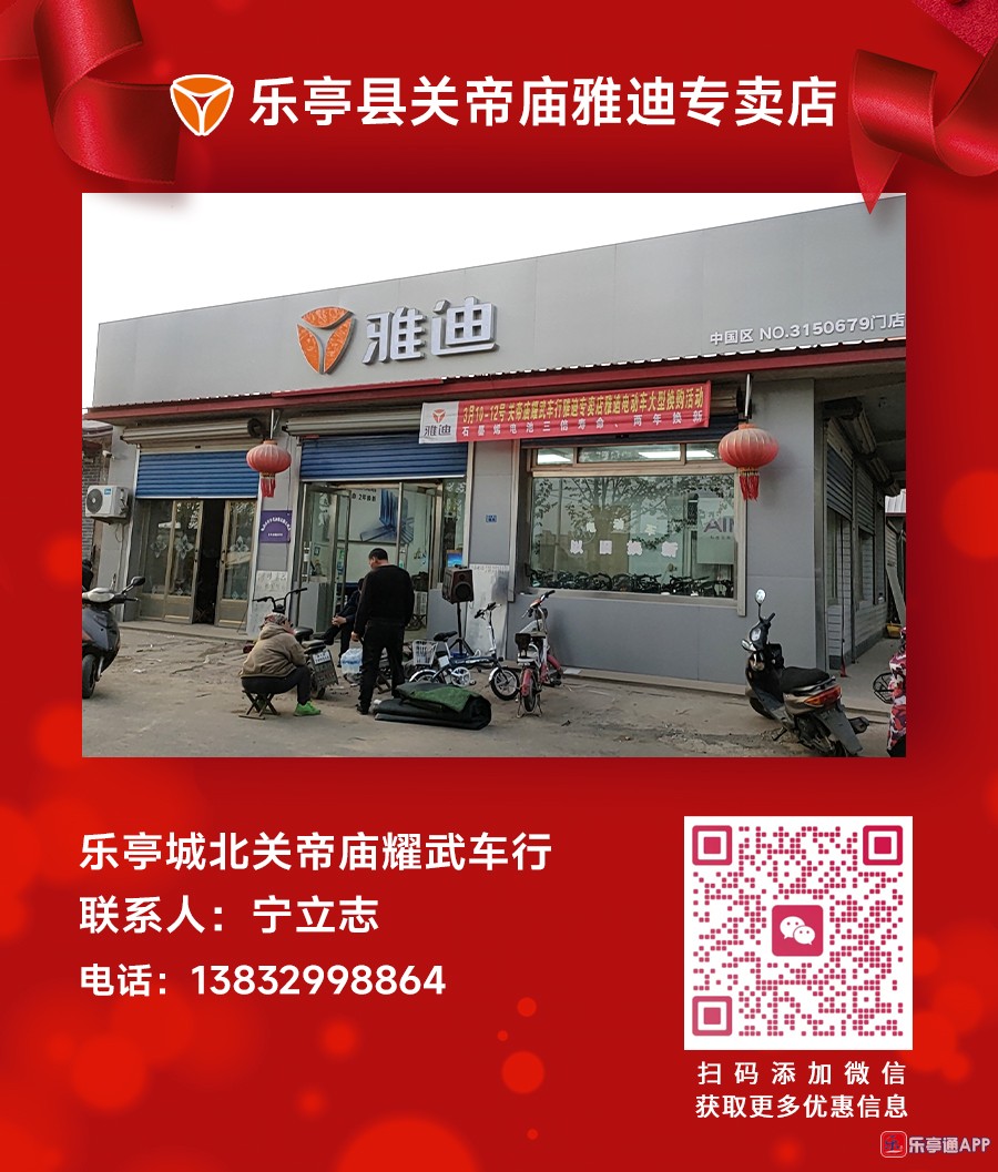活动地点二:乐亭全县各乡镇雅迪电动车专卖店