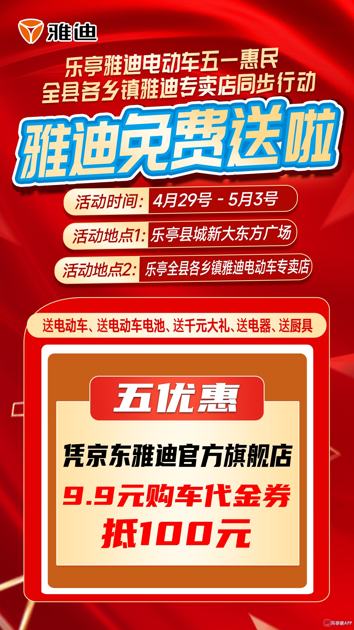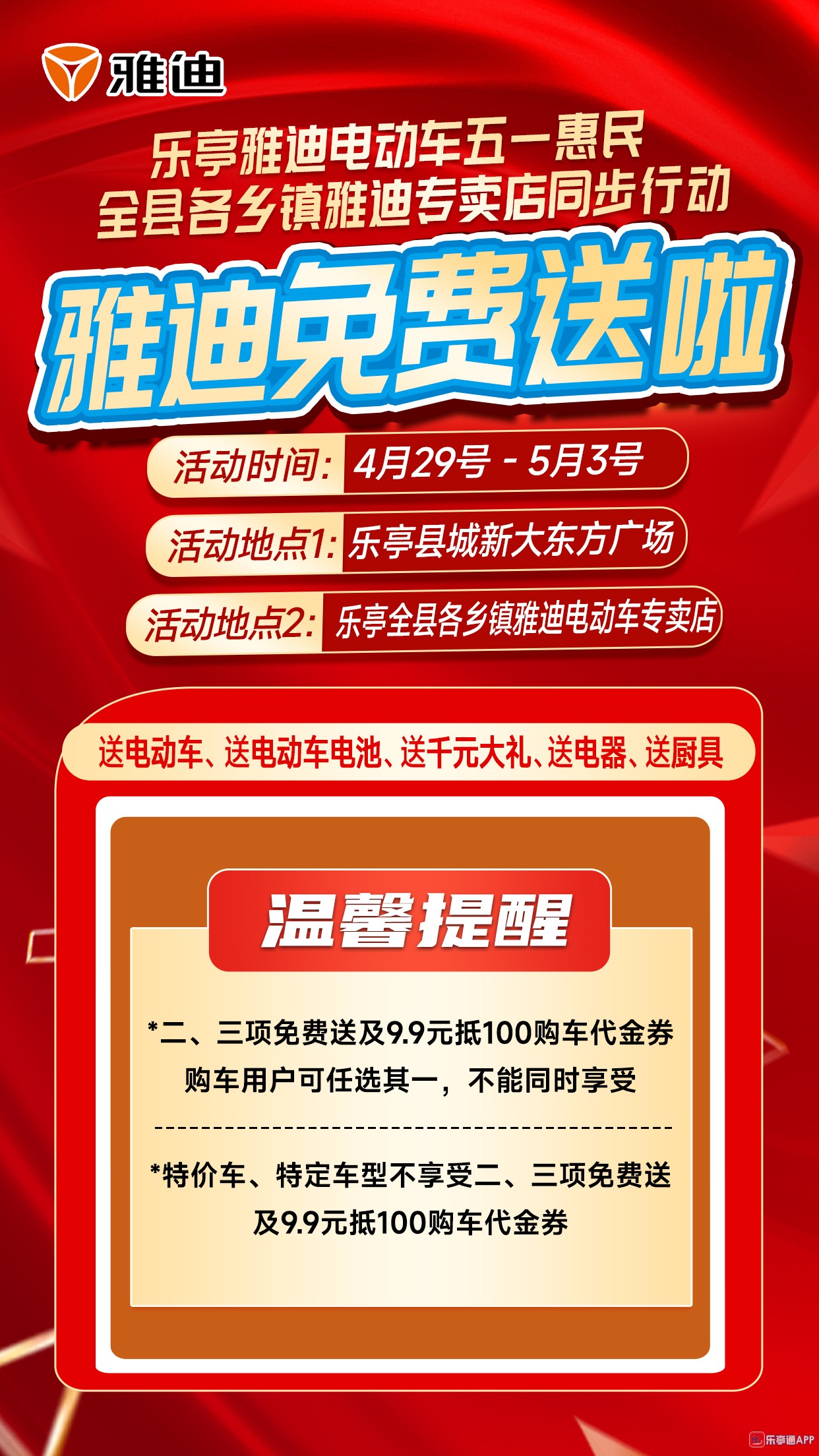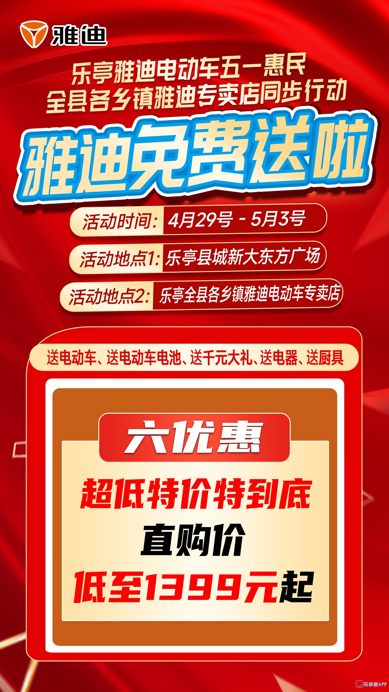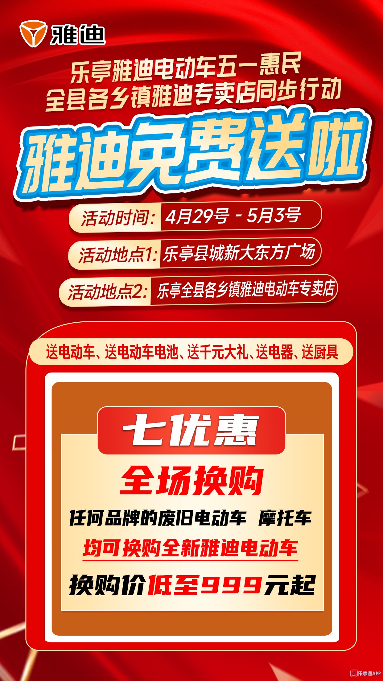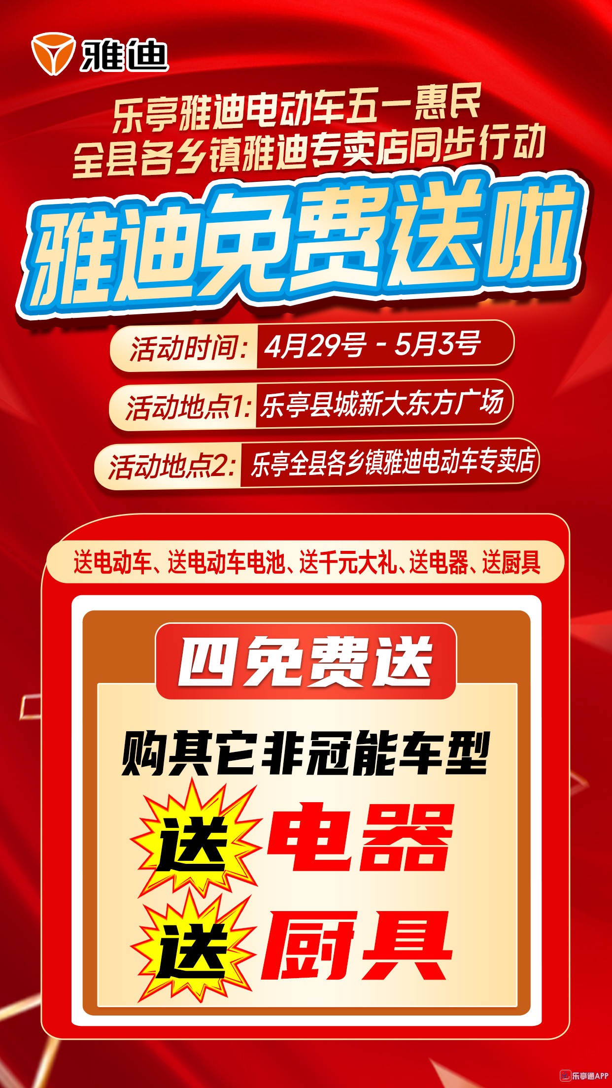 活动地点二:乐亭全县各乡镇雅迪电动车专卖店