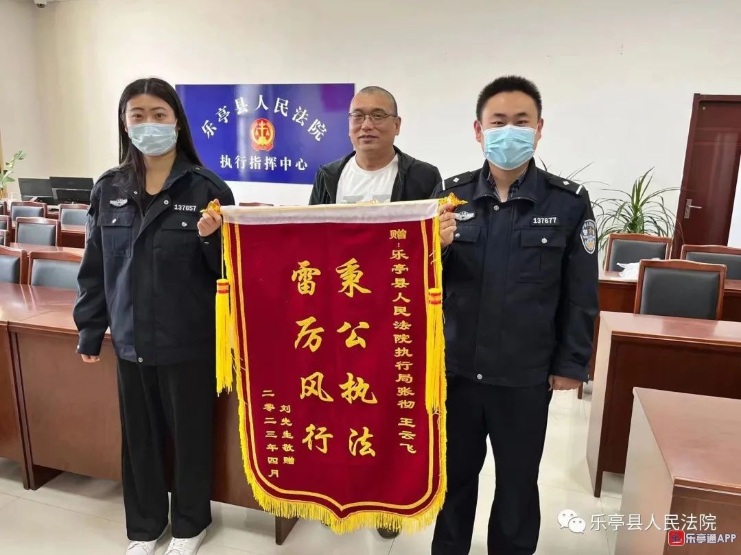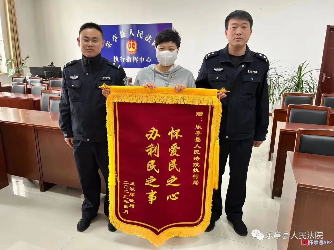 4月25日,乐亭法院执行局收到当事人送来的一面写有“怀爱民之心 办利民之事”的锦旗。