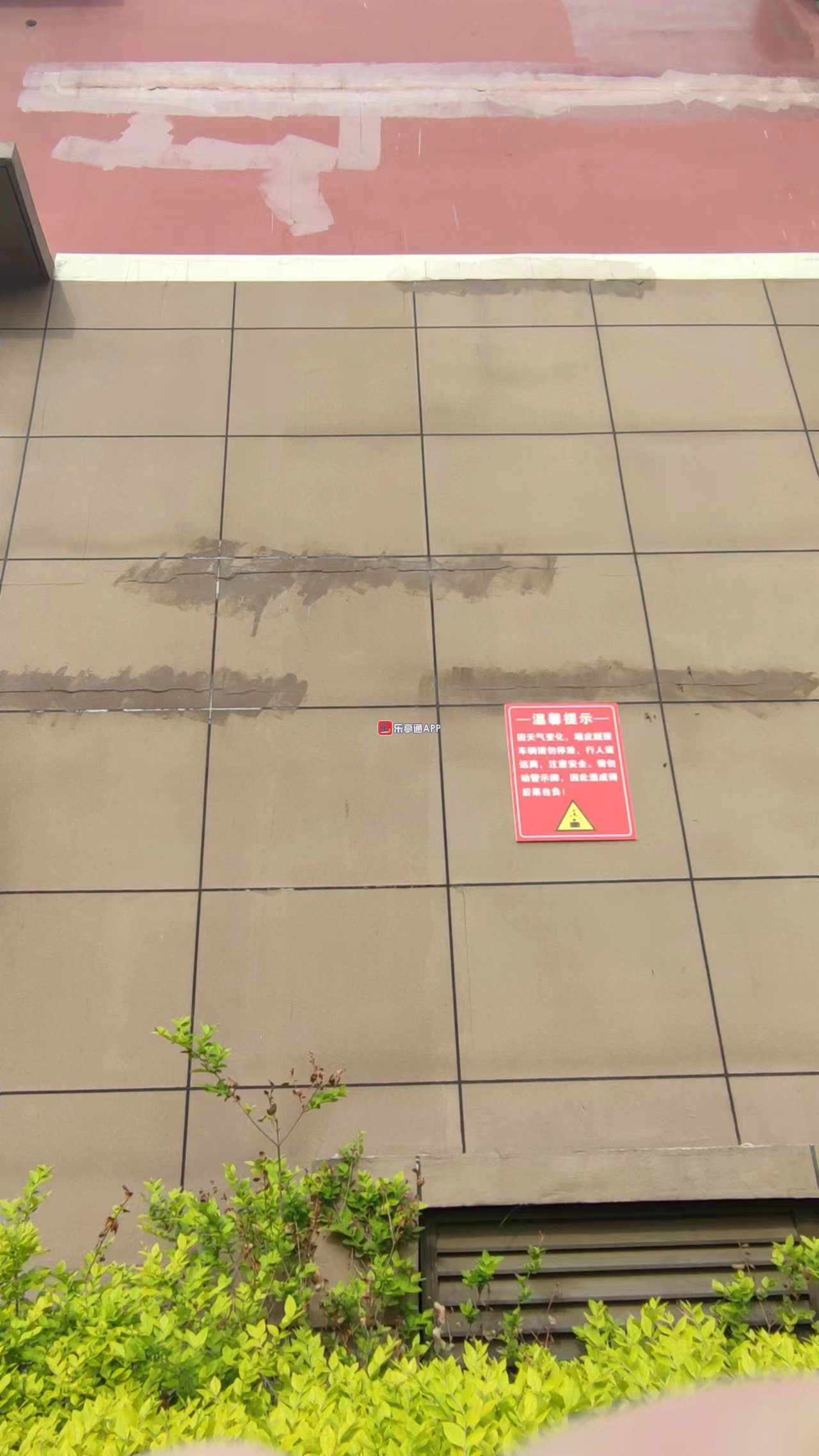御景东区温馨提示:因天气变化,墙皮脱落,车辆请勿停放,行人请远离,注意安全!