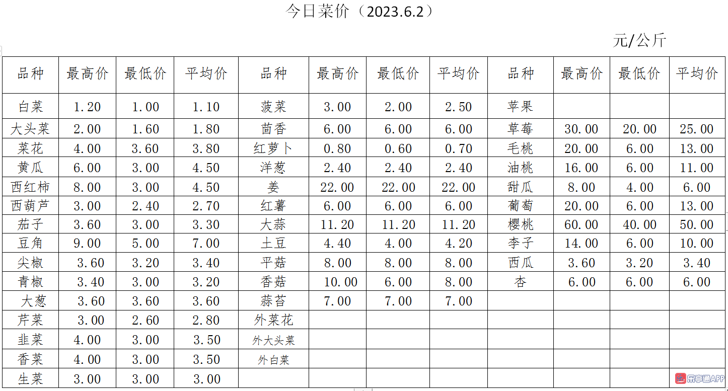 【果菜行情】6月2日乐亭县冀东果菜批发市场最新发布
