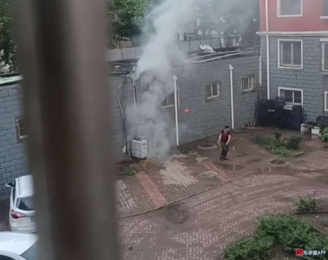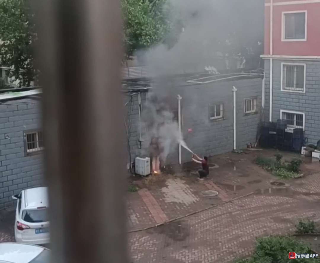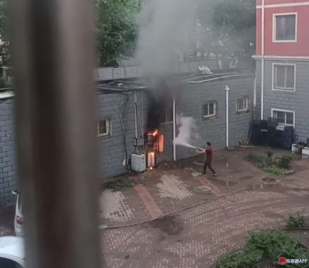 乐亭某小区一电箱着火,男子提灭火器逆行而上!