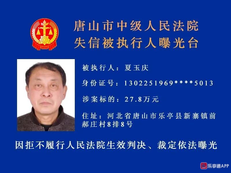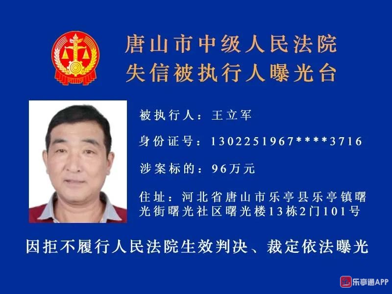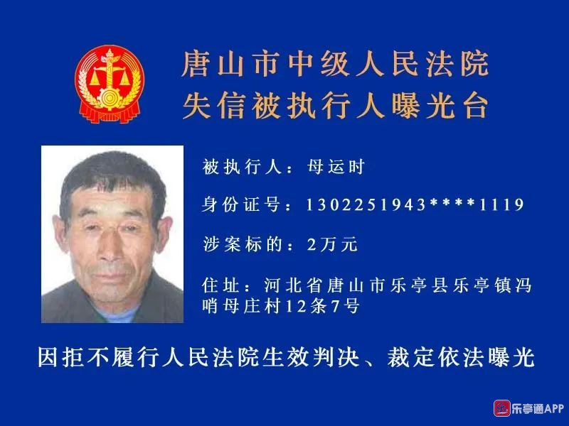 又一波“老赖”被曝光!乐亭3人上榜!最高涉案标的183.9万...