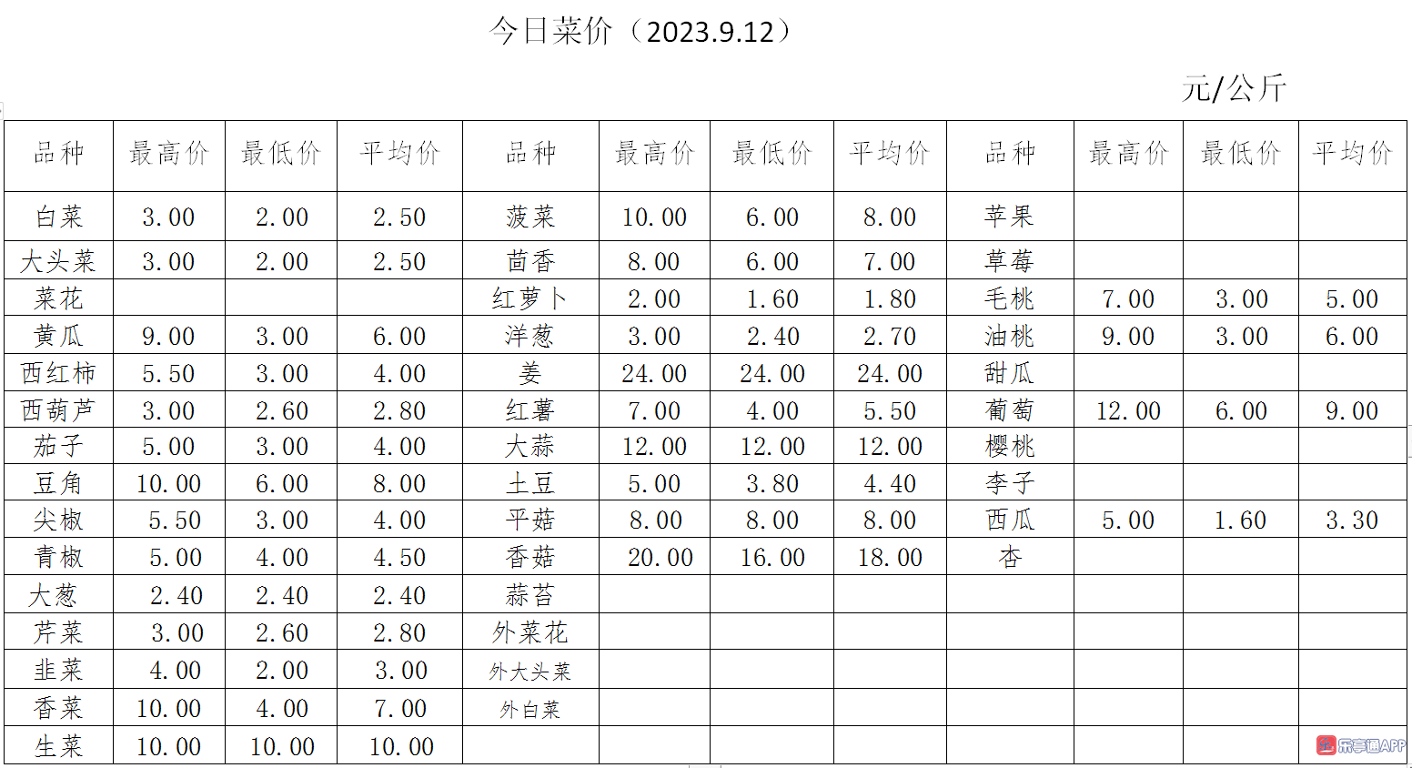 【果菜行情】9.12日乐亭县冀东果菜批发市场最新发布